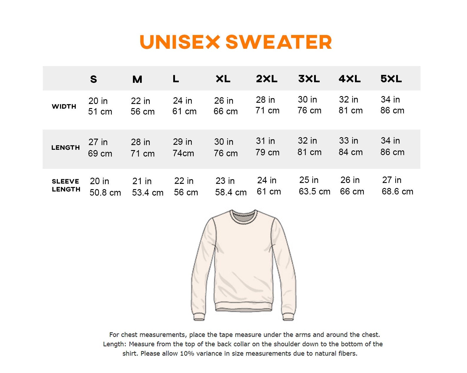 📏 Size Chart