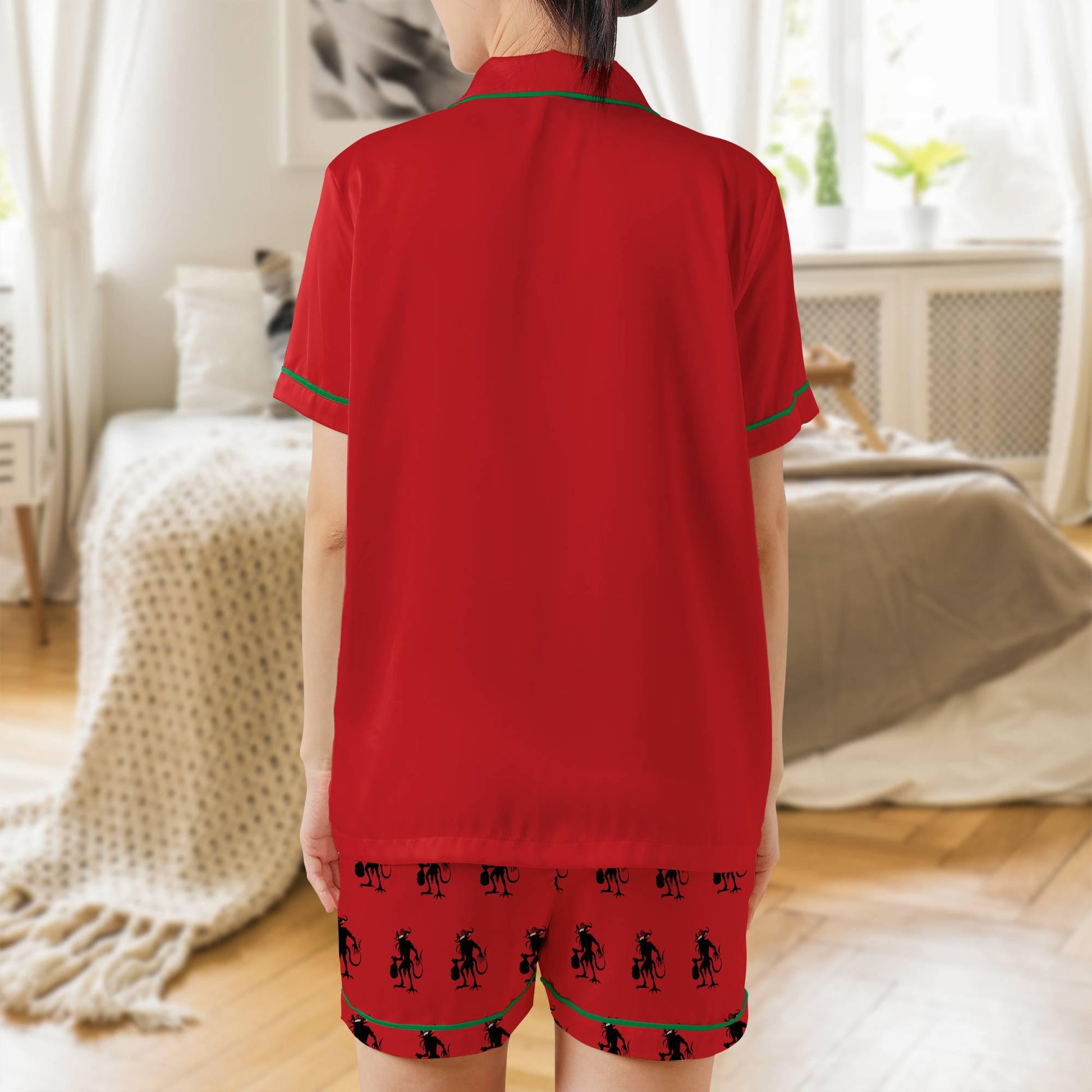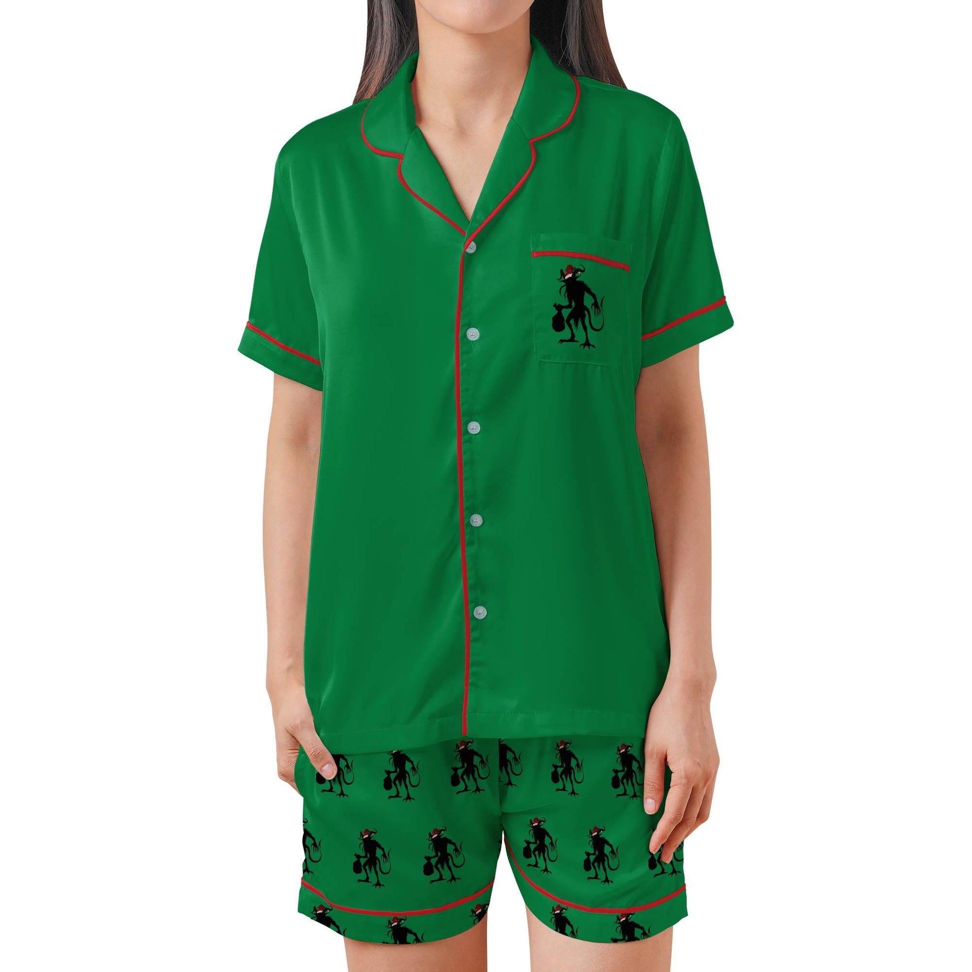 Krampus Satin Short Sleeves Pajama Set, The Krampus Christmas Women's Pajama Shorts Set