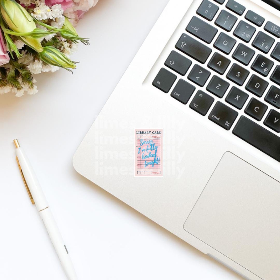 Library Card Sorry, I’m Fully Booked Tonight Blue Vinyl Sticker | Kindle Sticker | Bookish Stickers | Bookish Sticker | Sticker Quote