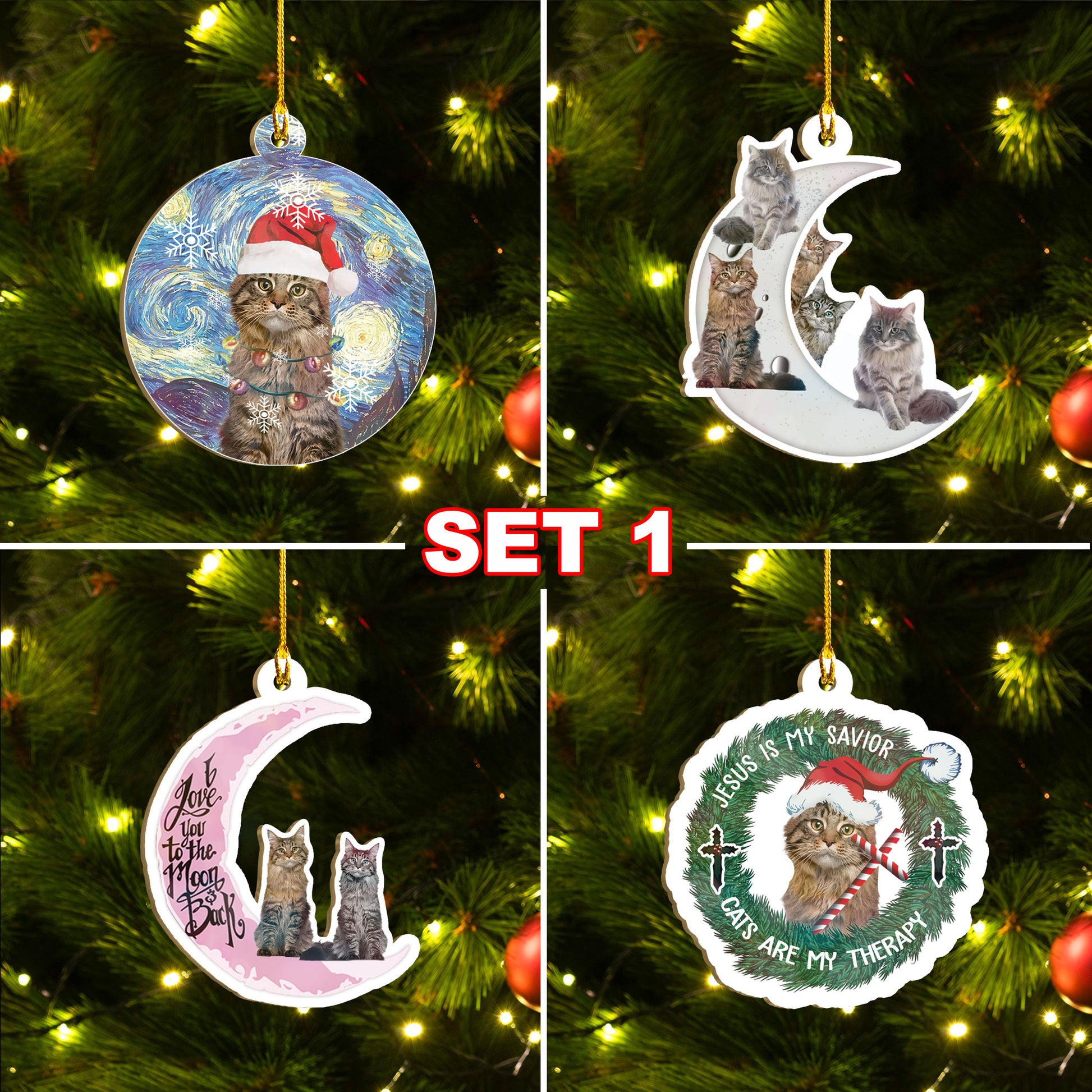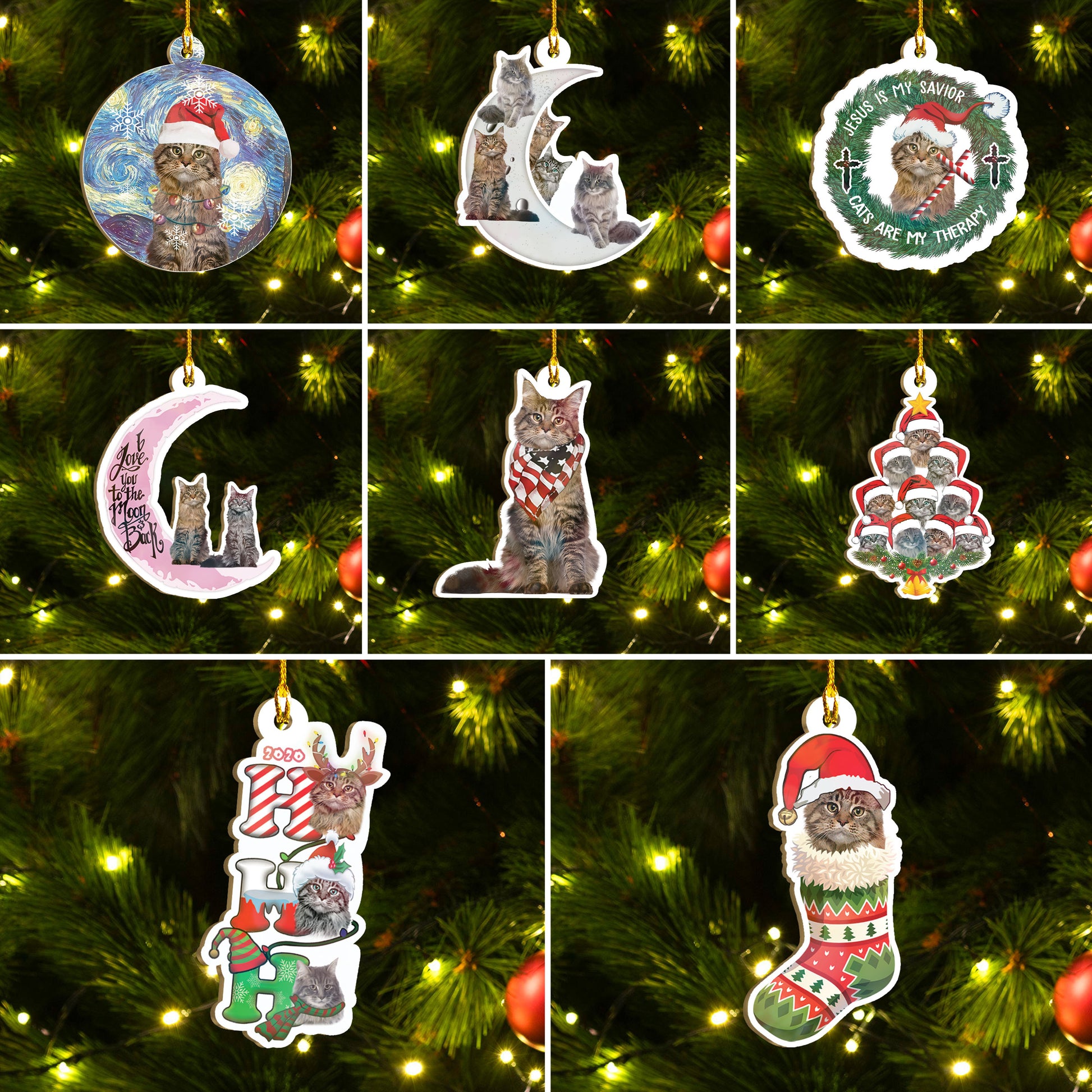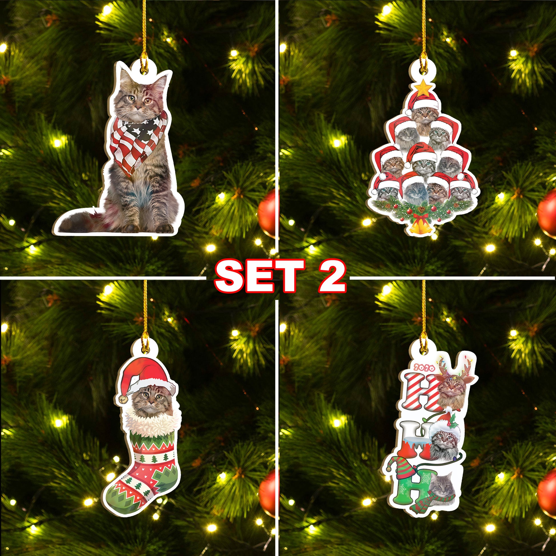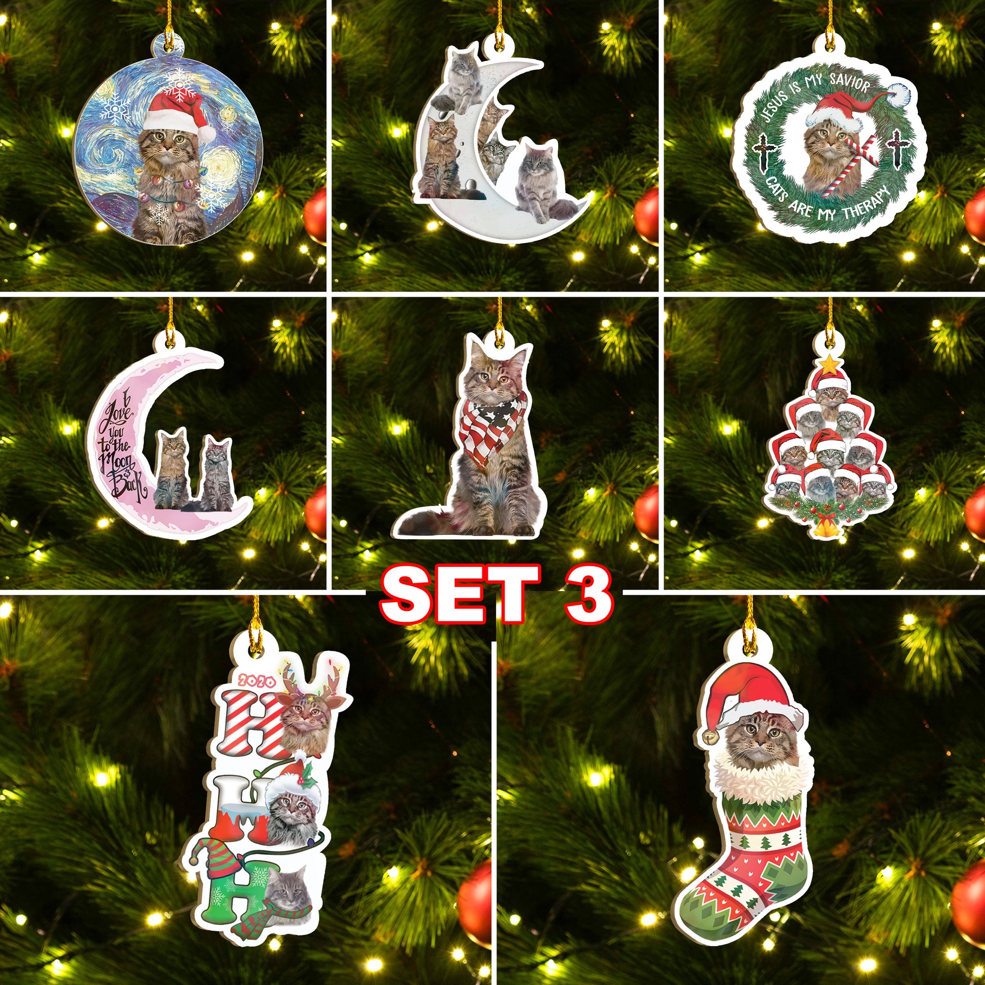 Maine Coon Cat Ornaments Set, Meowy Christmas Ornaments Set, Funny Xmas Ornaments Family Gift Idea For Cat Lover