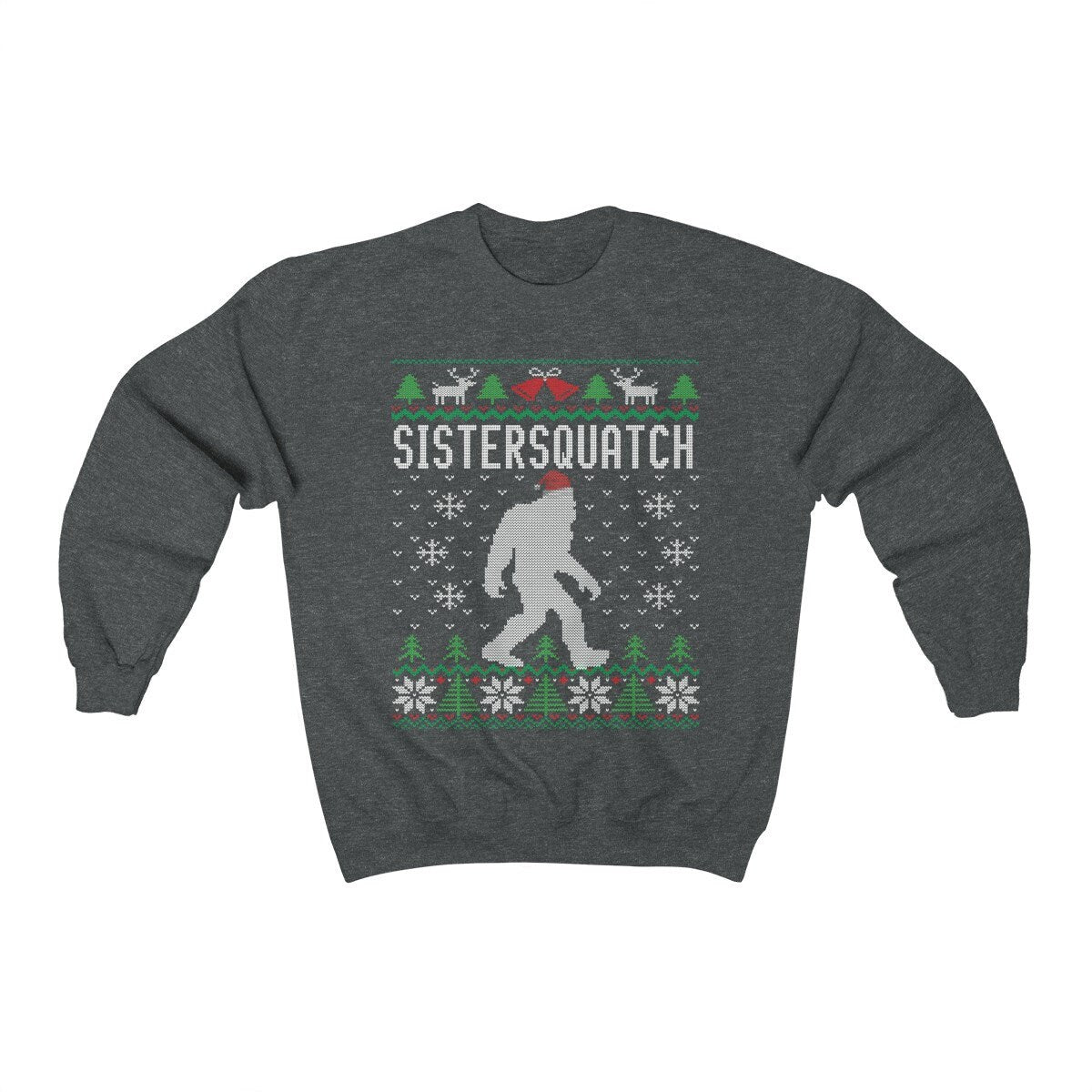 Matching Family Ugly Christmas For Sister Santa Hat Sasquatch Shirt Xmas Bigfoot Sweatshirt Unisex Heavy Blend Crewneck