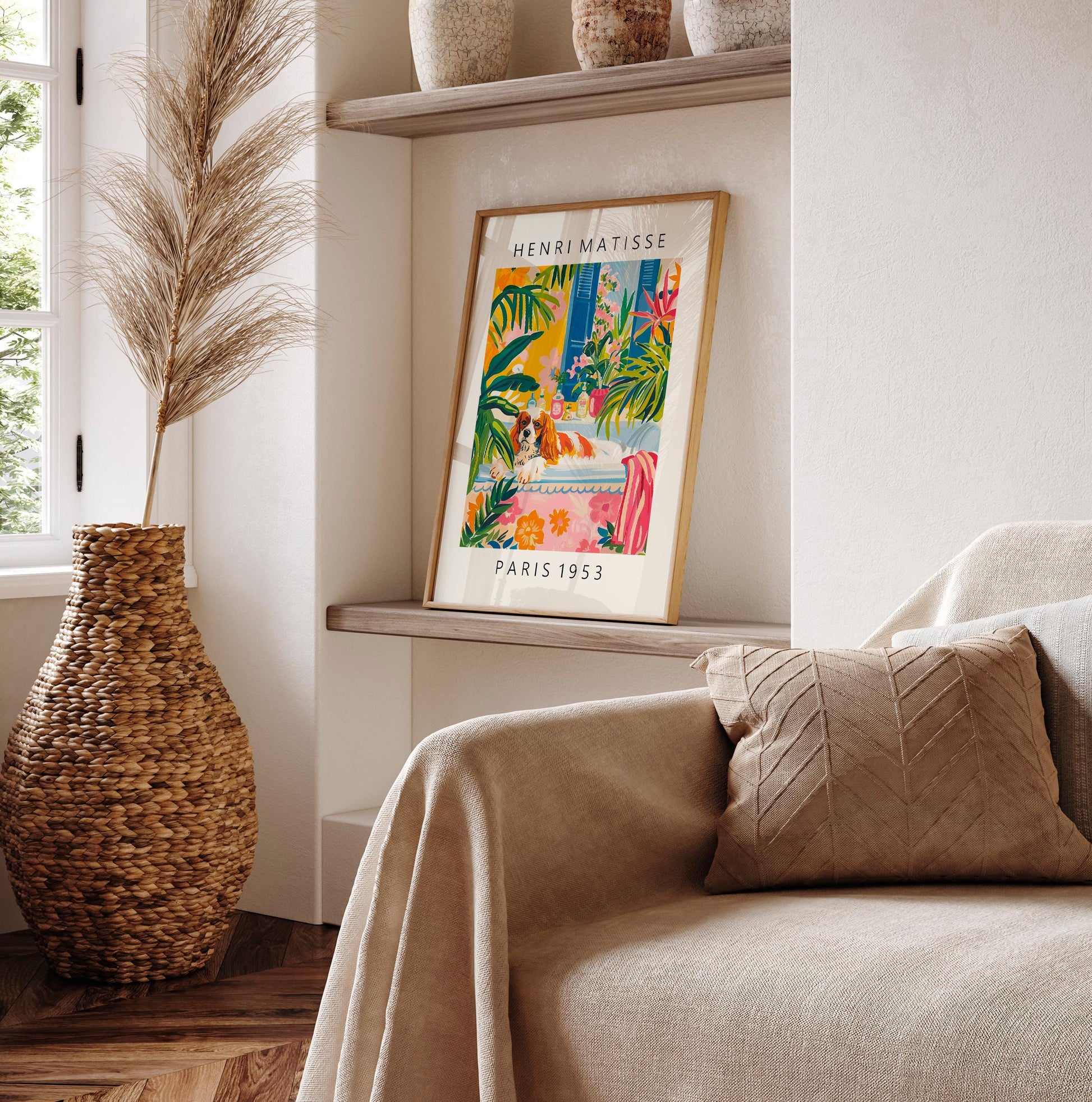 Matisse Style Cavalier King Charles Spaniel Art Print: Funny Bathroom Decor