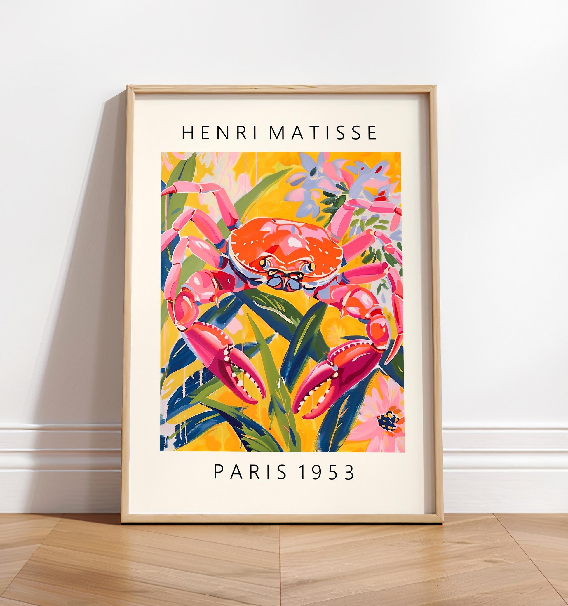 Matisse Style Crab Print: Pink Beachy Coastal Wall Art