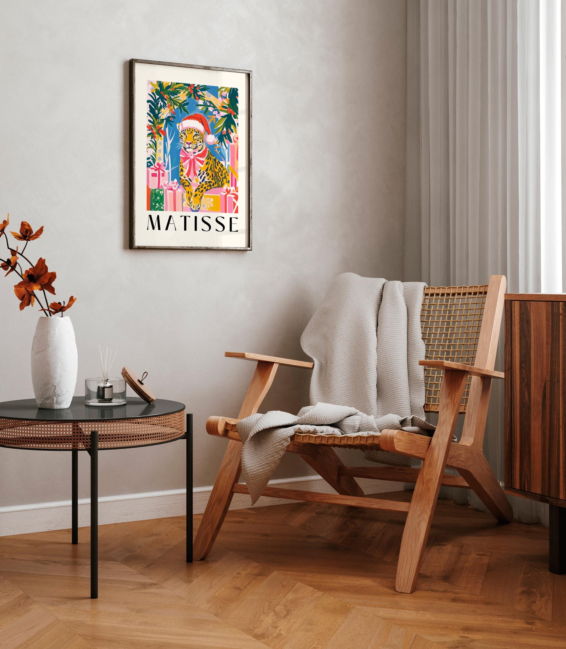 Matisse Style Leopard Christmas Print: Funny Santa Hat Wall Art