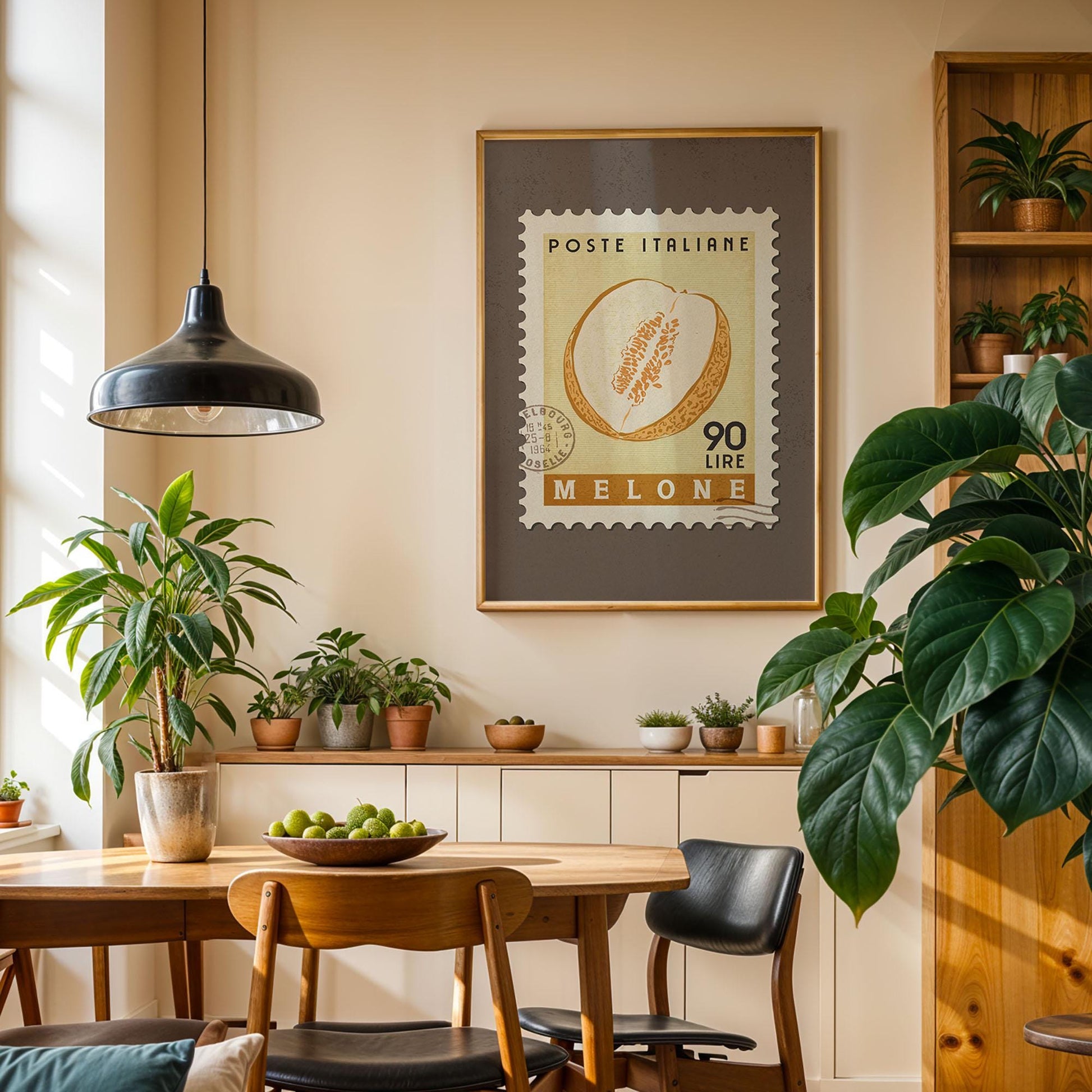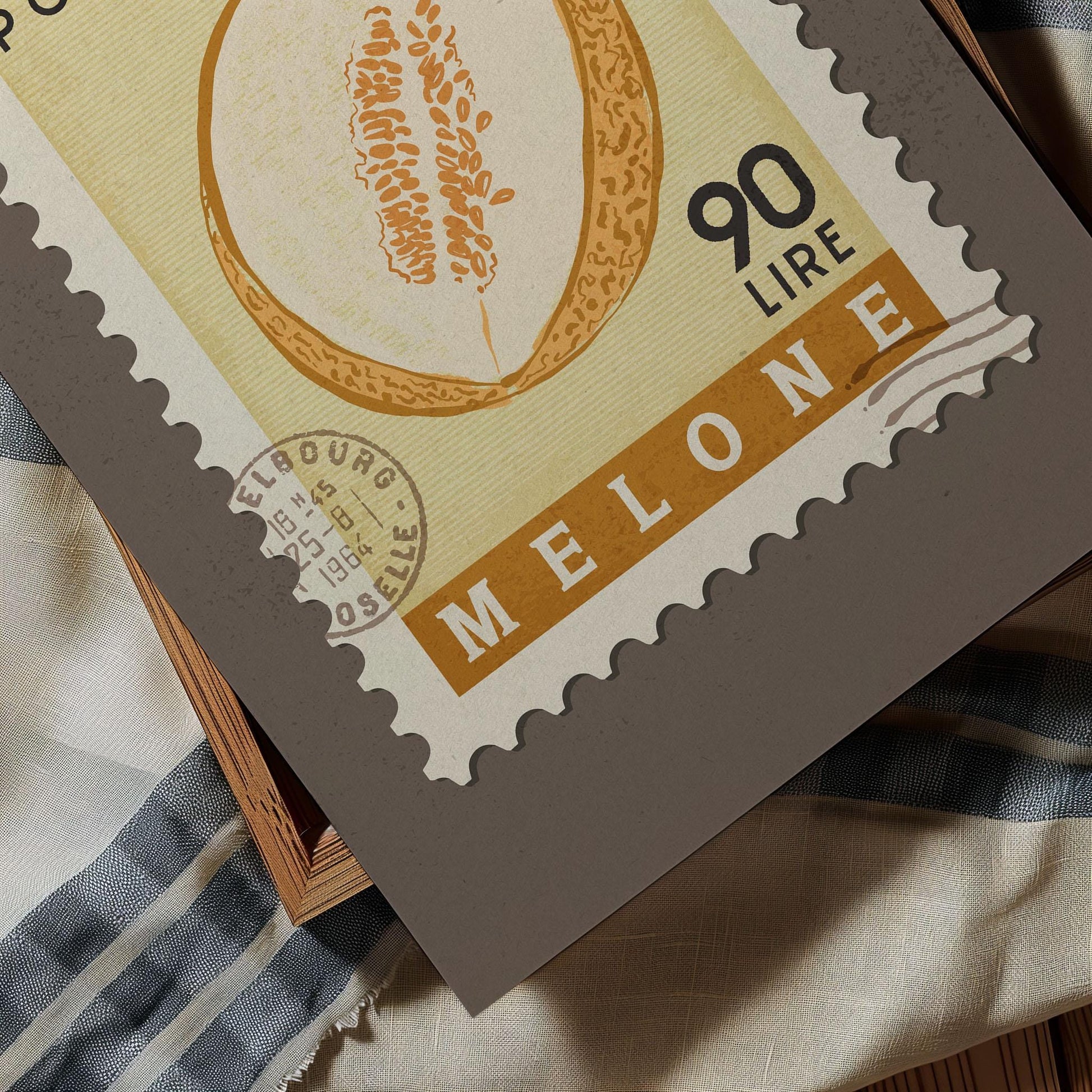 Melon Poster, Melon Fruit Market Print | Italian Food Art | Fun Fruit Poster, Melon Wall Art, Retro Food Art Print