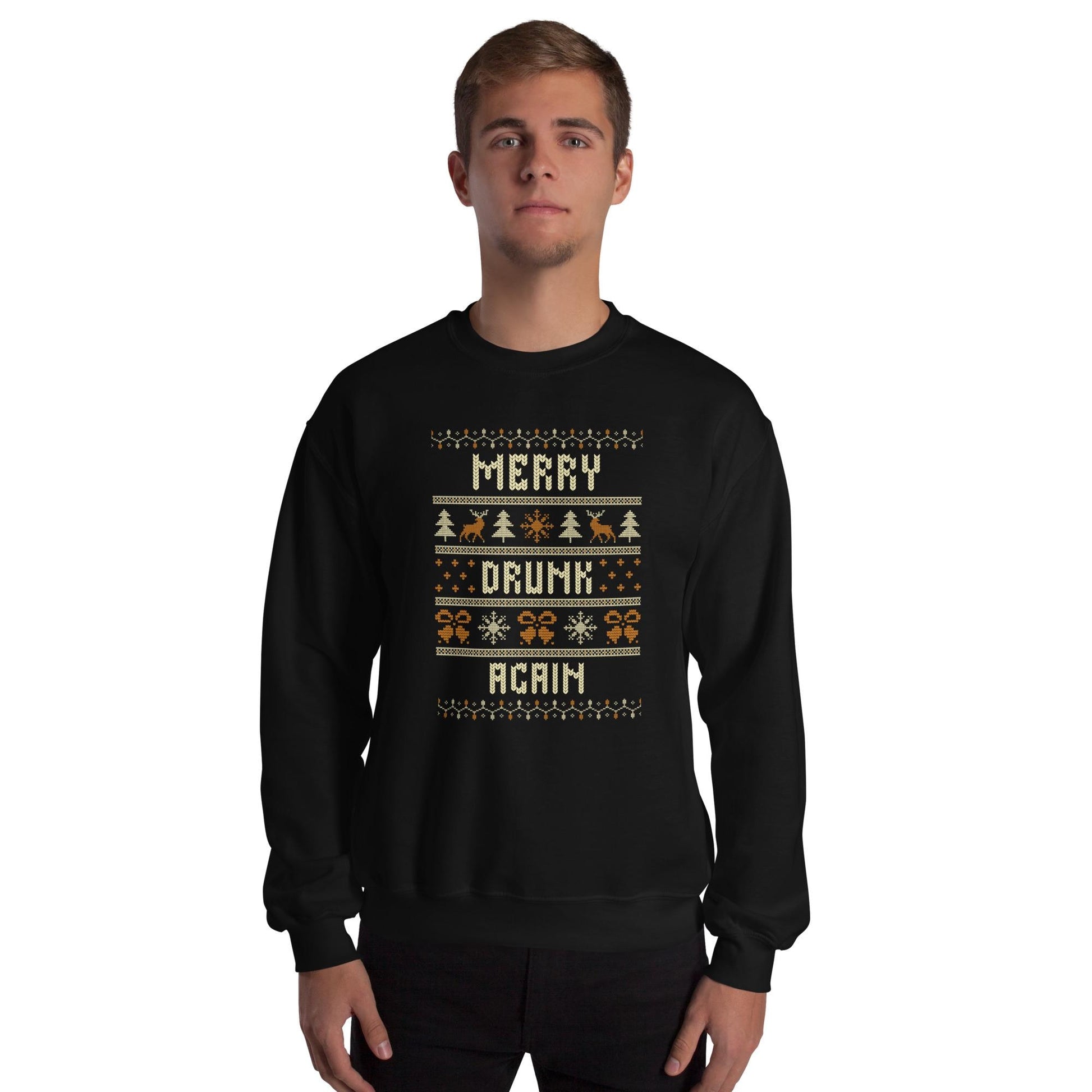 Merry Drunk Again Christmas Jumper | Funny Drinking Ugly Xmas | Boozy Festive Party Knitwear | Secret Santa Adult Gift
