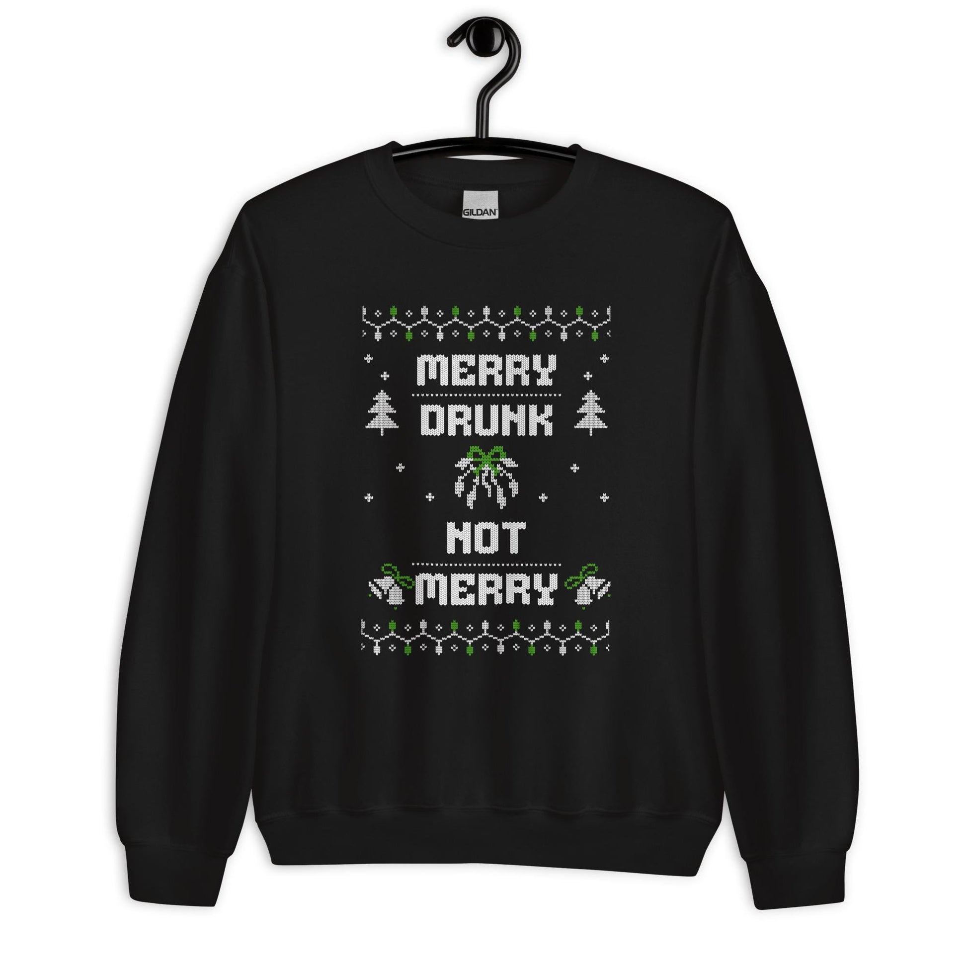 Merry Drunk Not Merry Funny Christmas Jumper | Alcohol Knit Ugly Xmas | Festive Drinking Party Holiday Gift