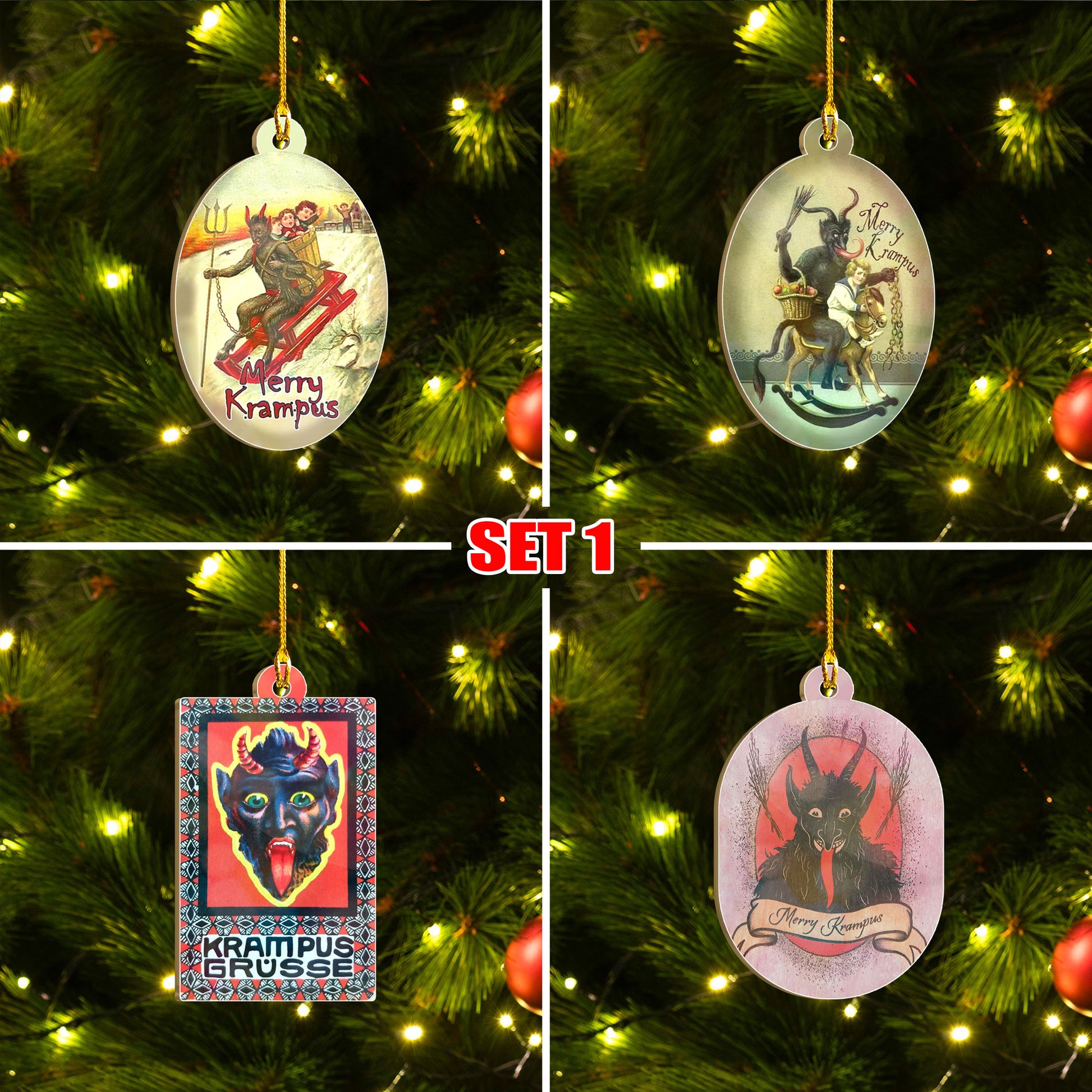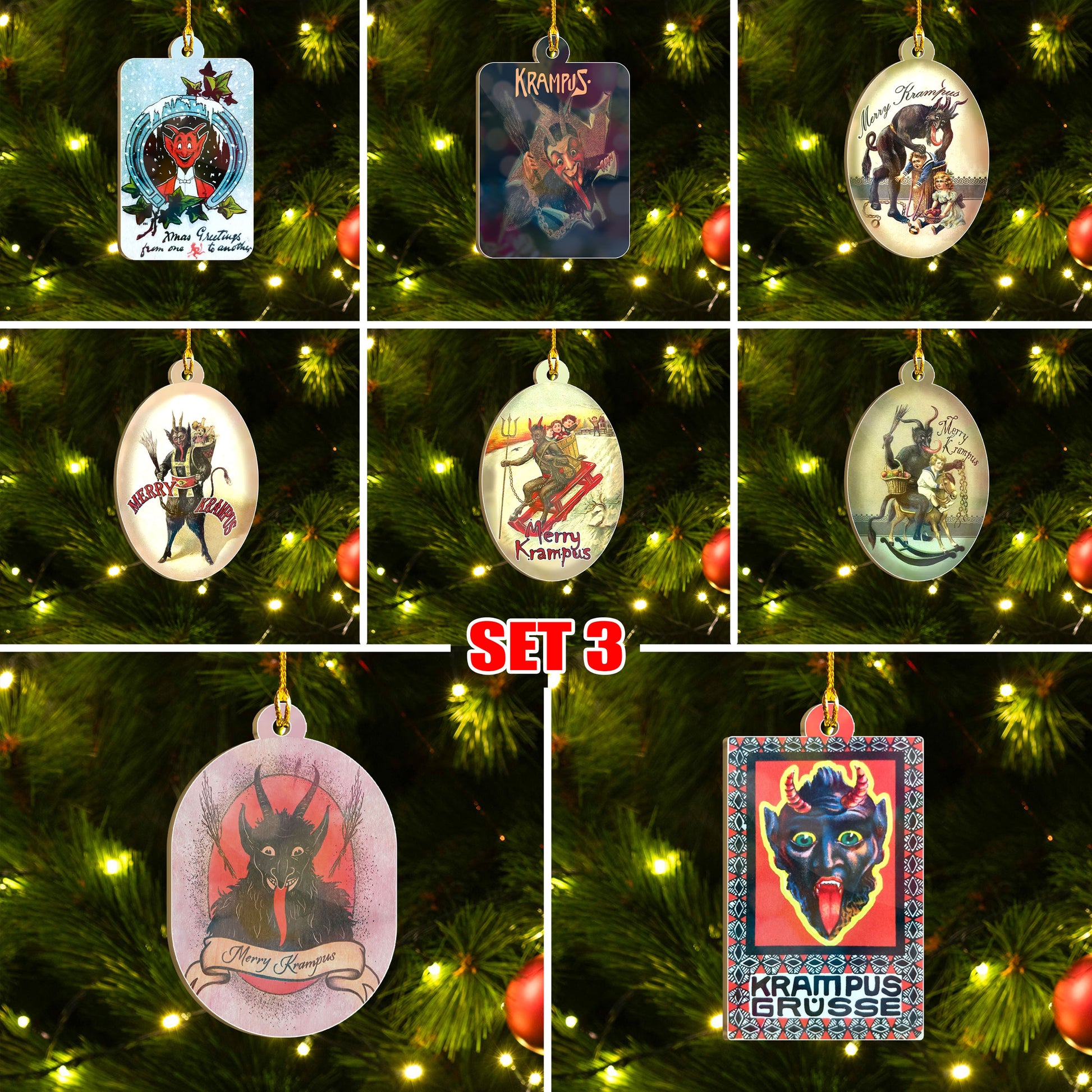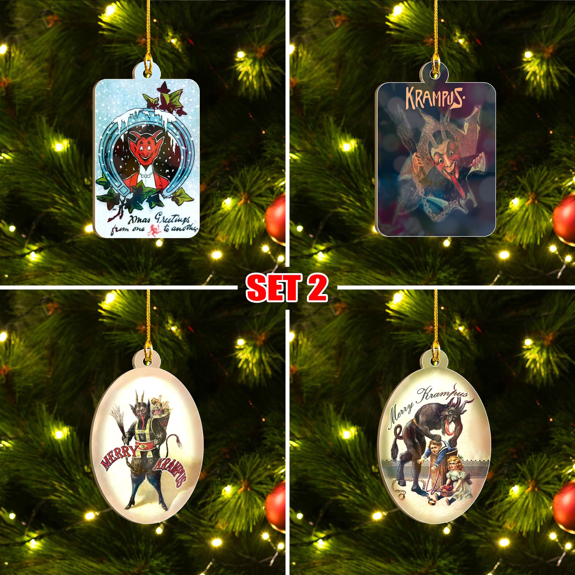Merry Krampus Ornament Set, Dark Christmas Ornament Set, Christmas Family Gift Idea