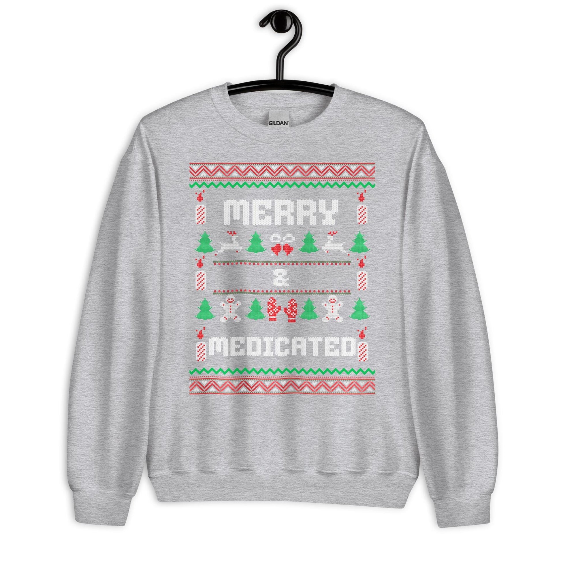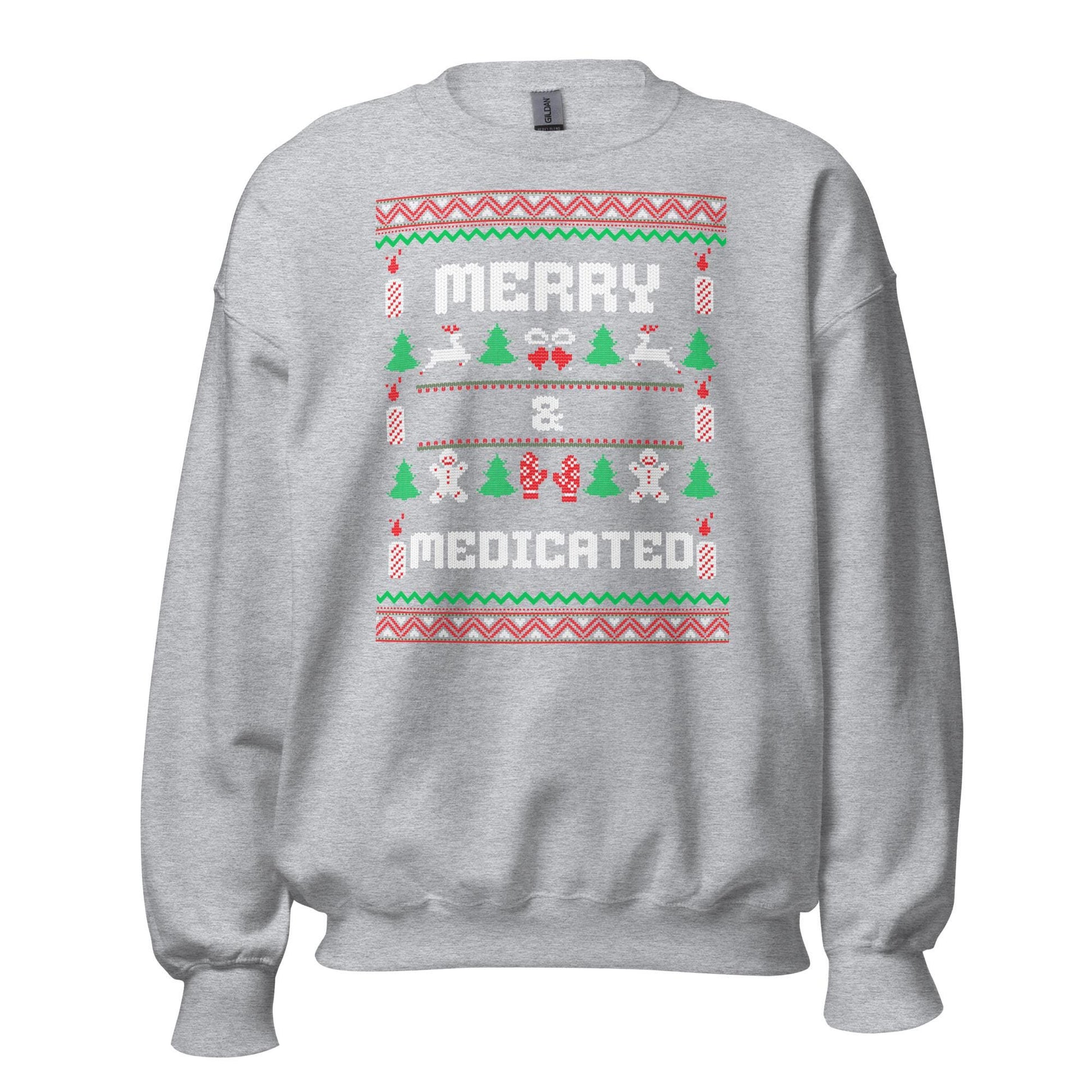 Merry & Medicated Funny Christmas Jumper | Ugly Xmas | Adult Festive Jumper | Secret Santa Novelty Gift