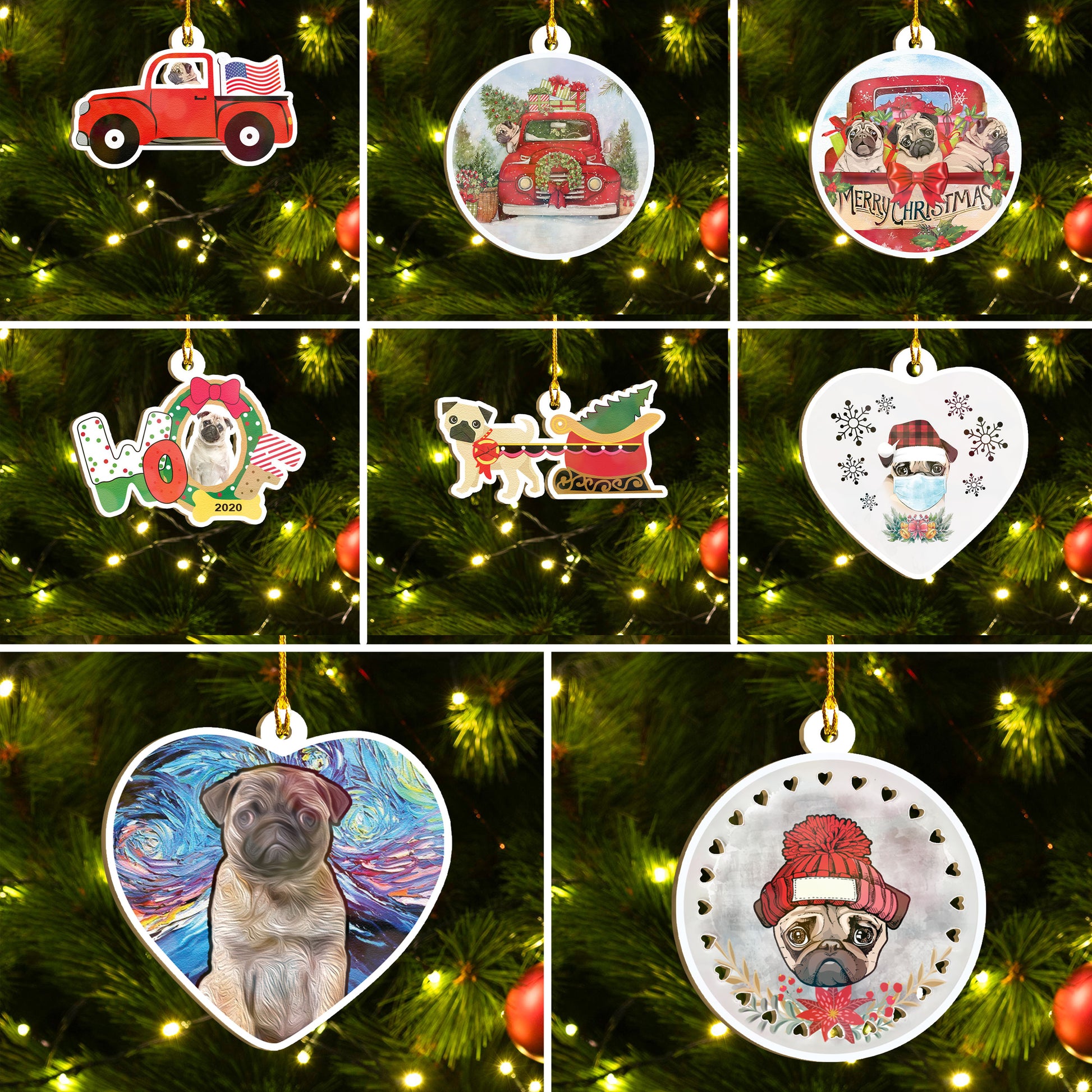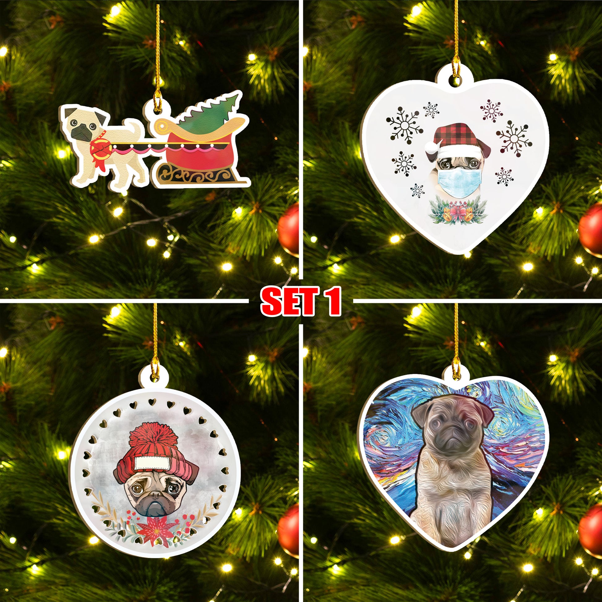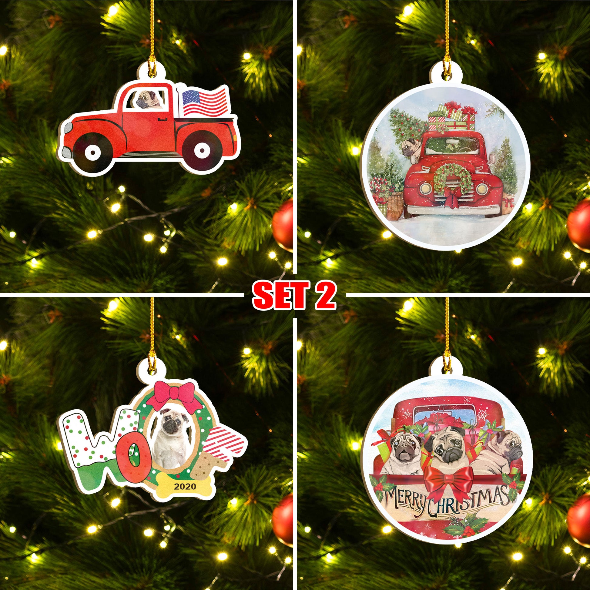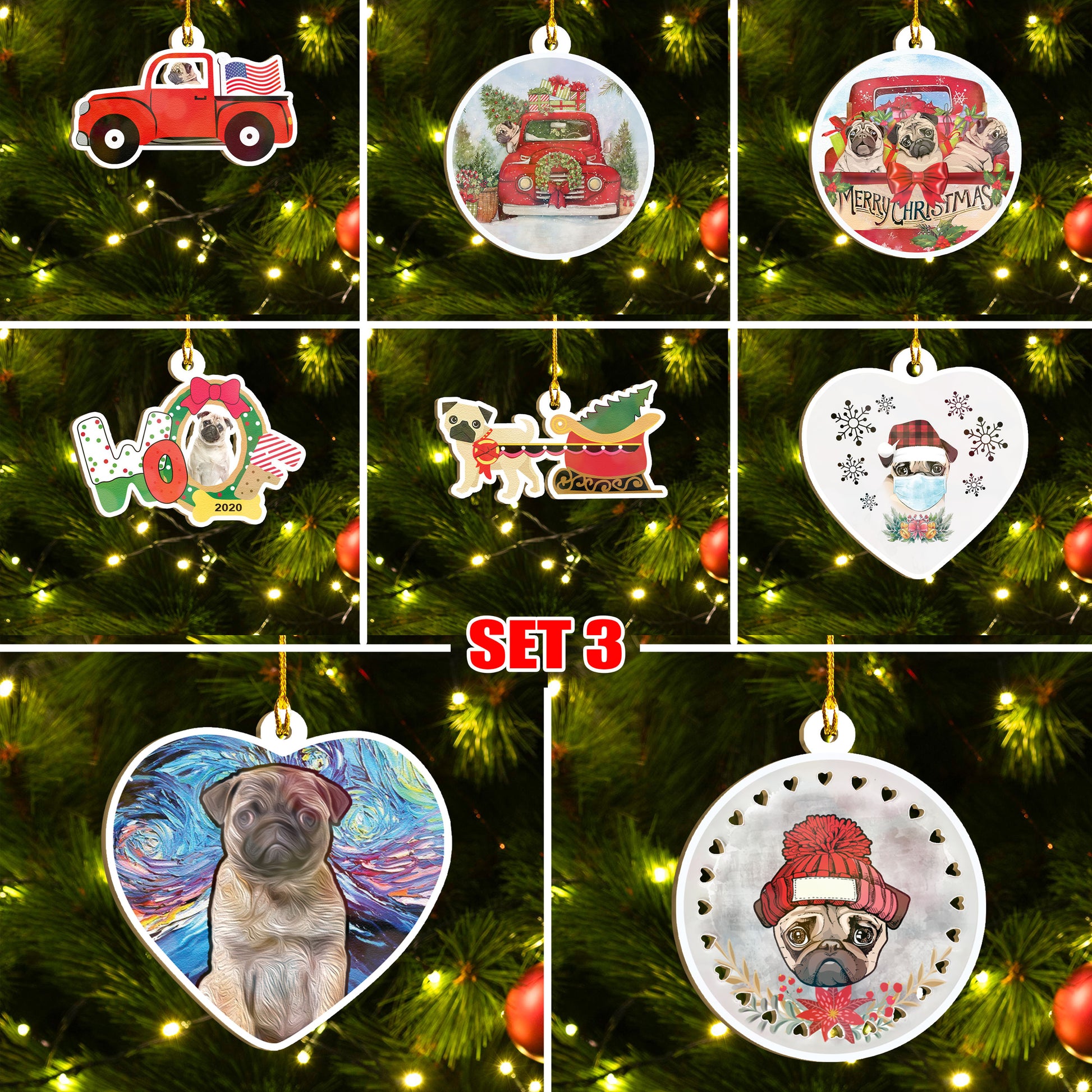 Merry Pugmas Black Pug Ornament Set, Merry Woofmas Ornament Set, Funny Xmas Ornament Family Gift Idea