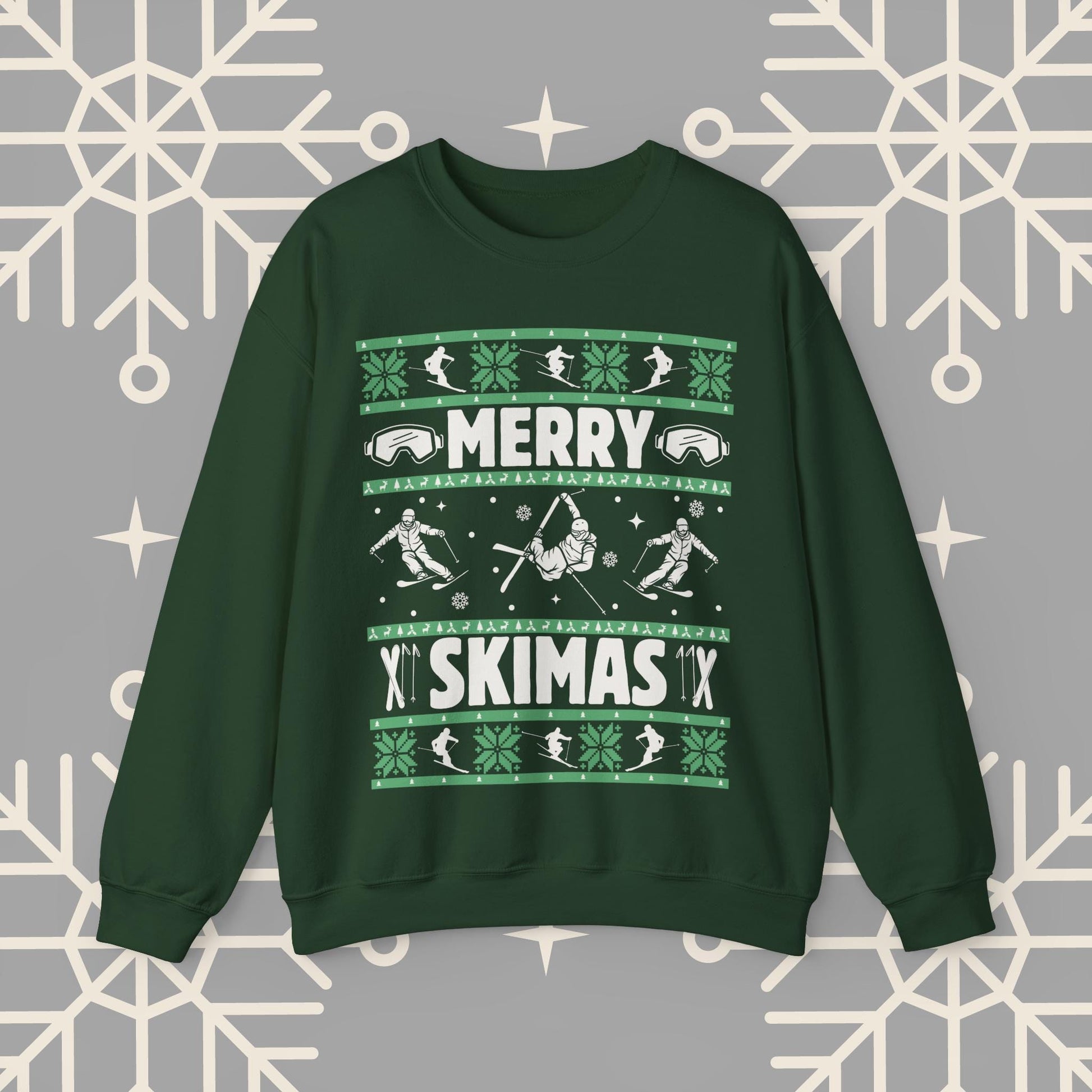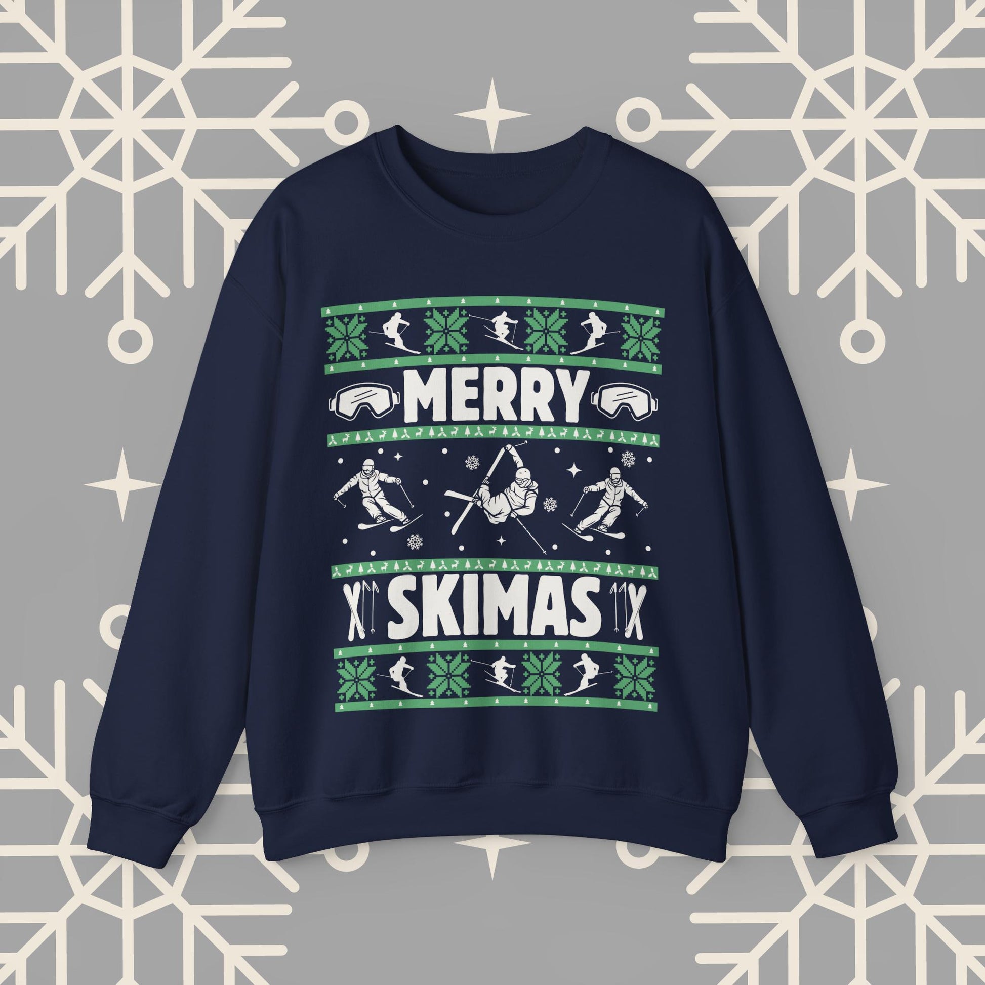 Merry Skimas Ugly Christmas , Skiing Christmas Sweatshirt, Ski Holiday Jumper, Funny Gift for Skier