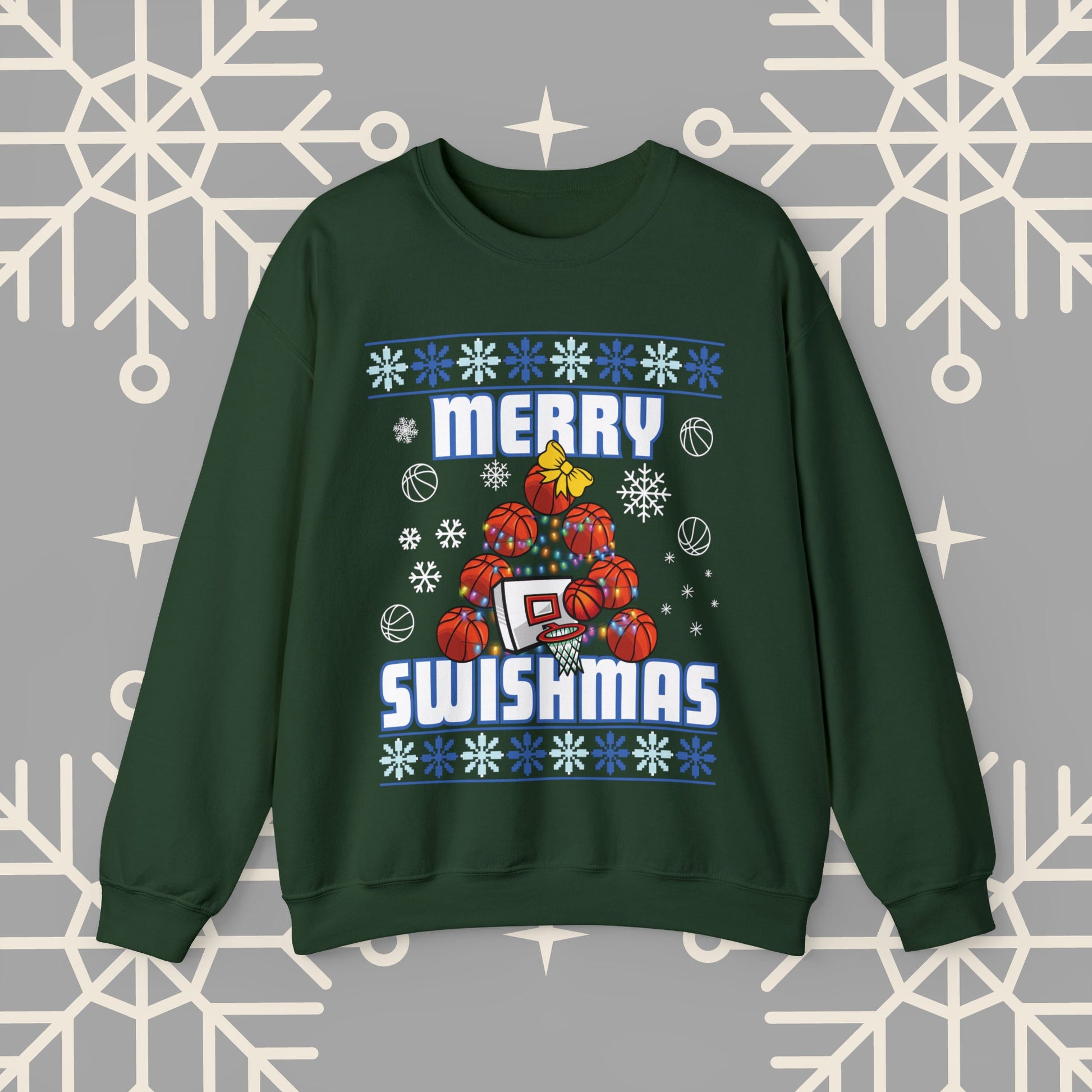 Merry Swishmas Sweatshirt, Basketball Ugly Christmas , Christmas Basketball Sweatshirt, Sports Holiday Jumper, Gifts for Men