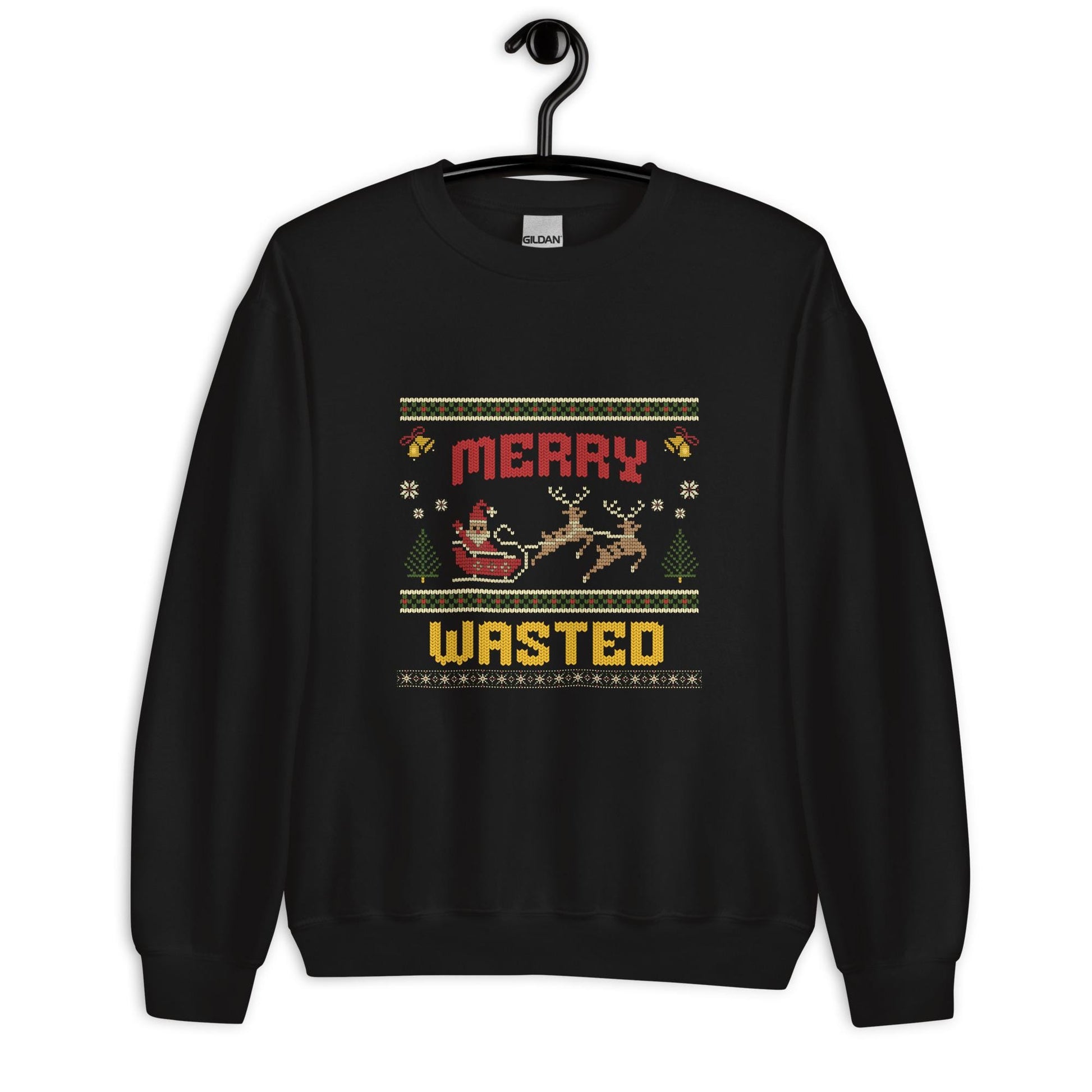 Merry Wasted Christmas Jumper | Funny Ugly Xmas | Holiday Drinking Sweatshirt Hoodie | Unisex Party Festive Christmas Jumper