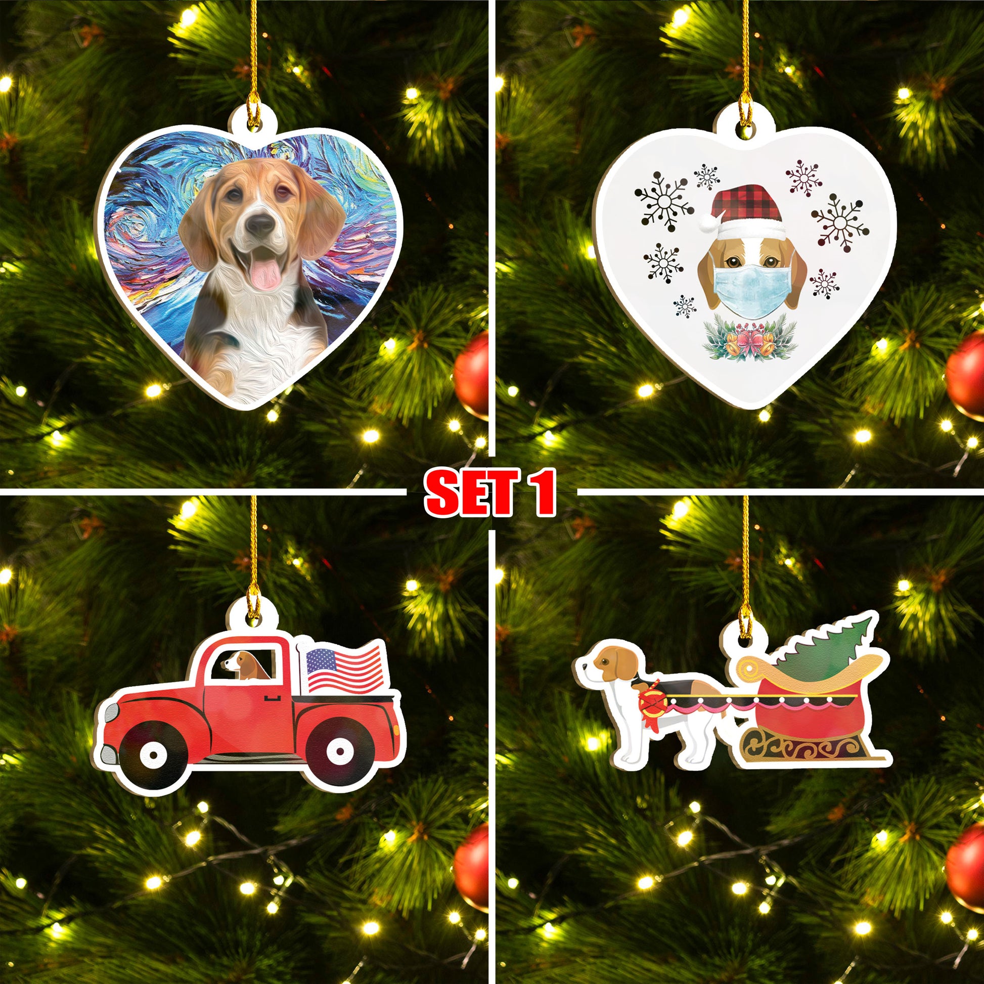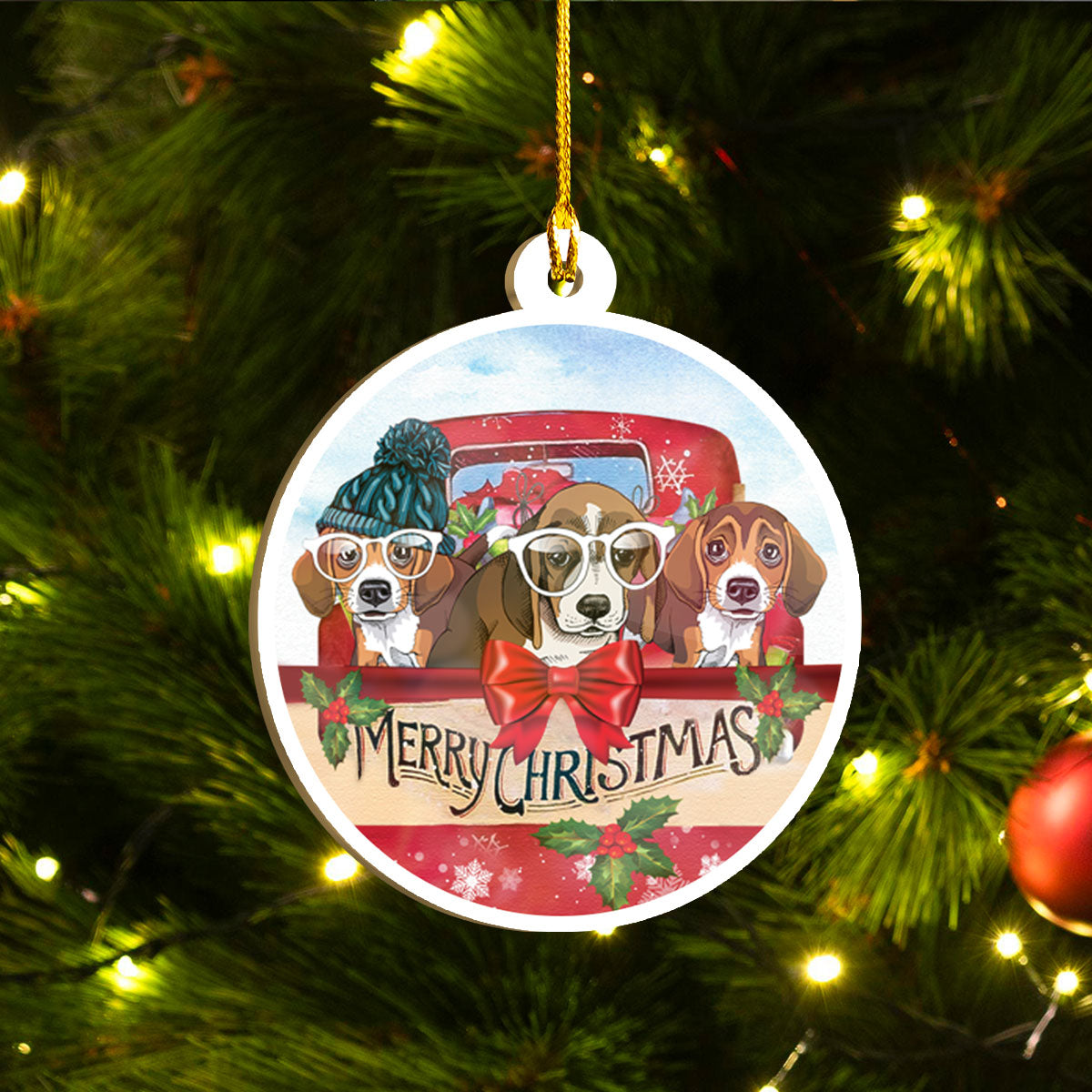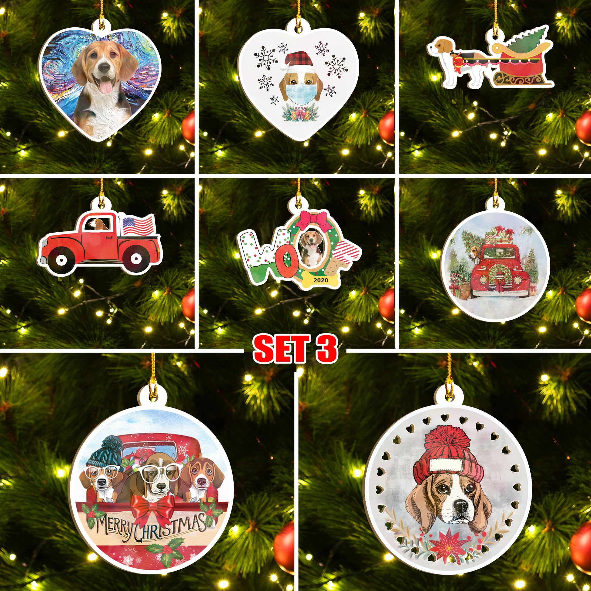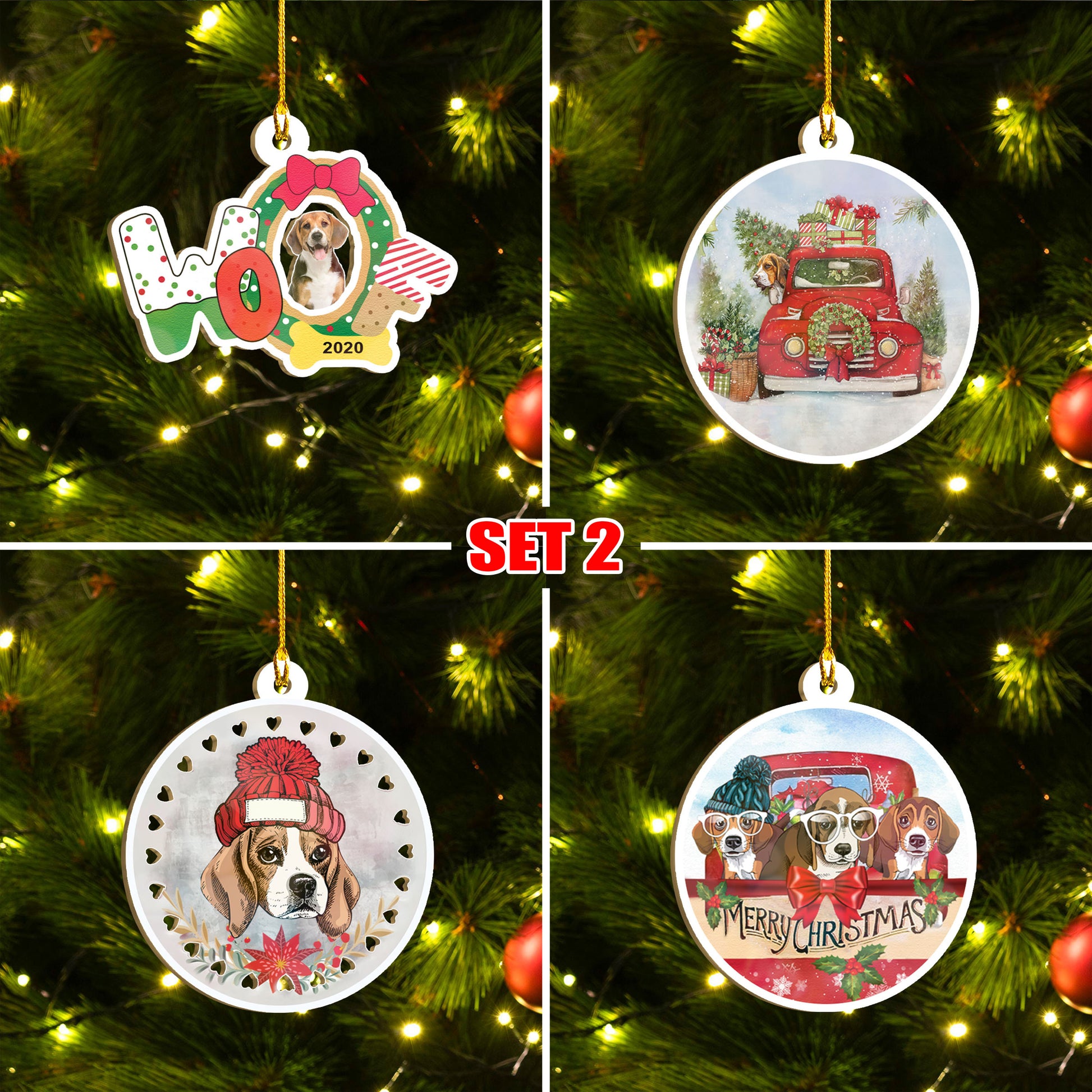 Merry Xmas Beagle Ornament Set, Merry Woofmas Ornament Set, Funny Xmas Ornament Family Gift Idea For Dog Lover