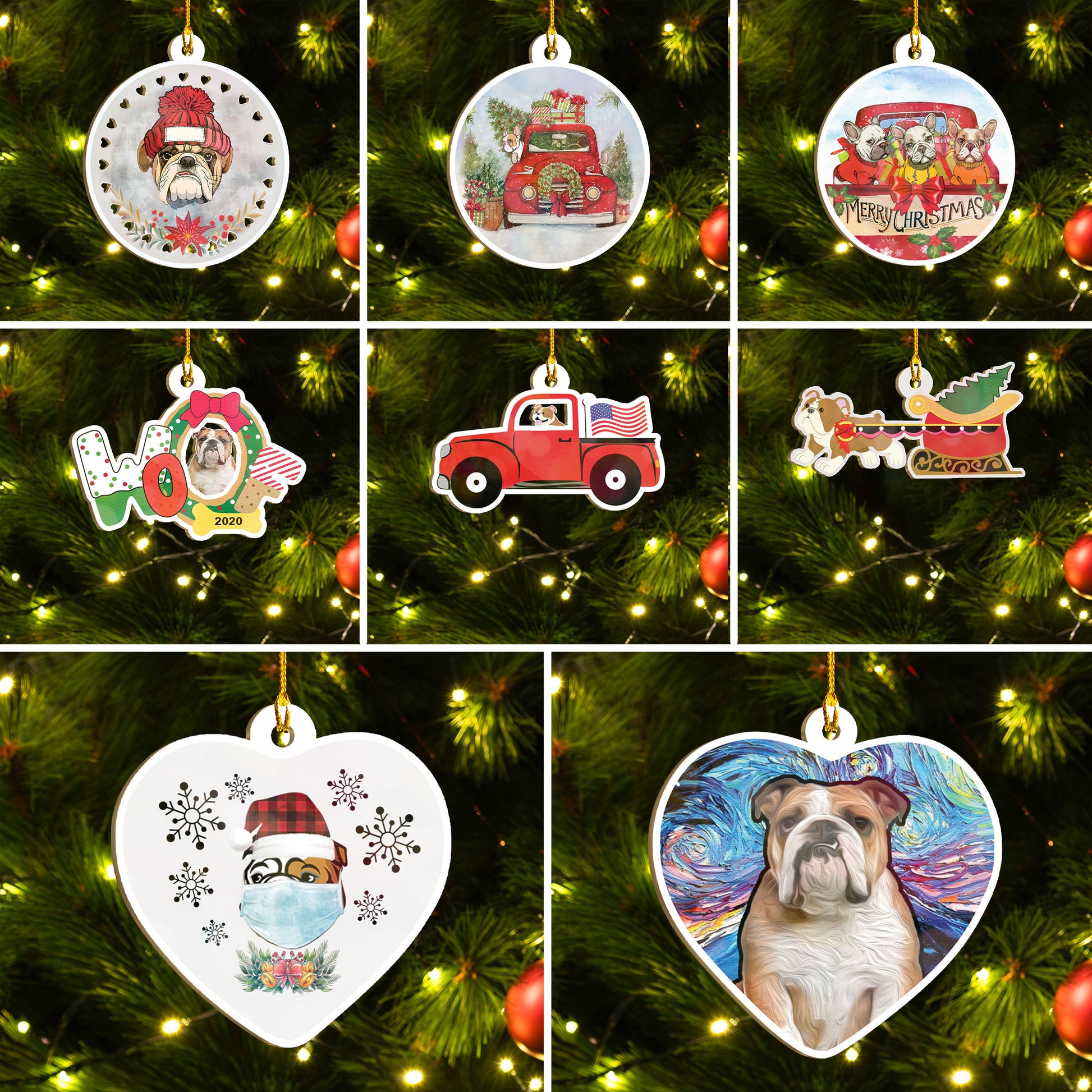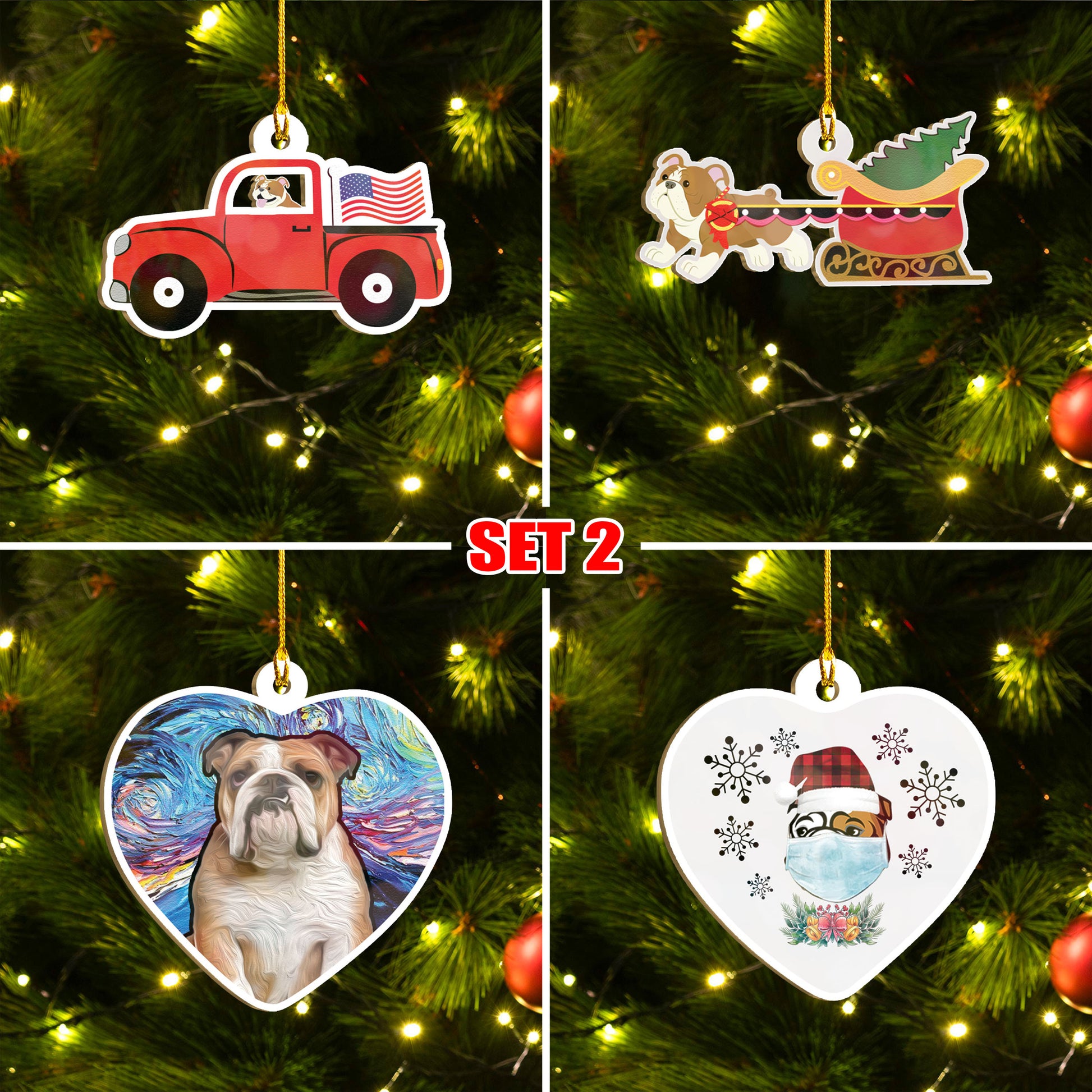 Merry Xmas Bulldog Ornament Set, Merry Woofmas Ornament Set, Funny Xmas Ornament Family Gift Idea For Dog Lover