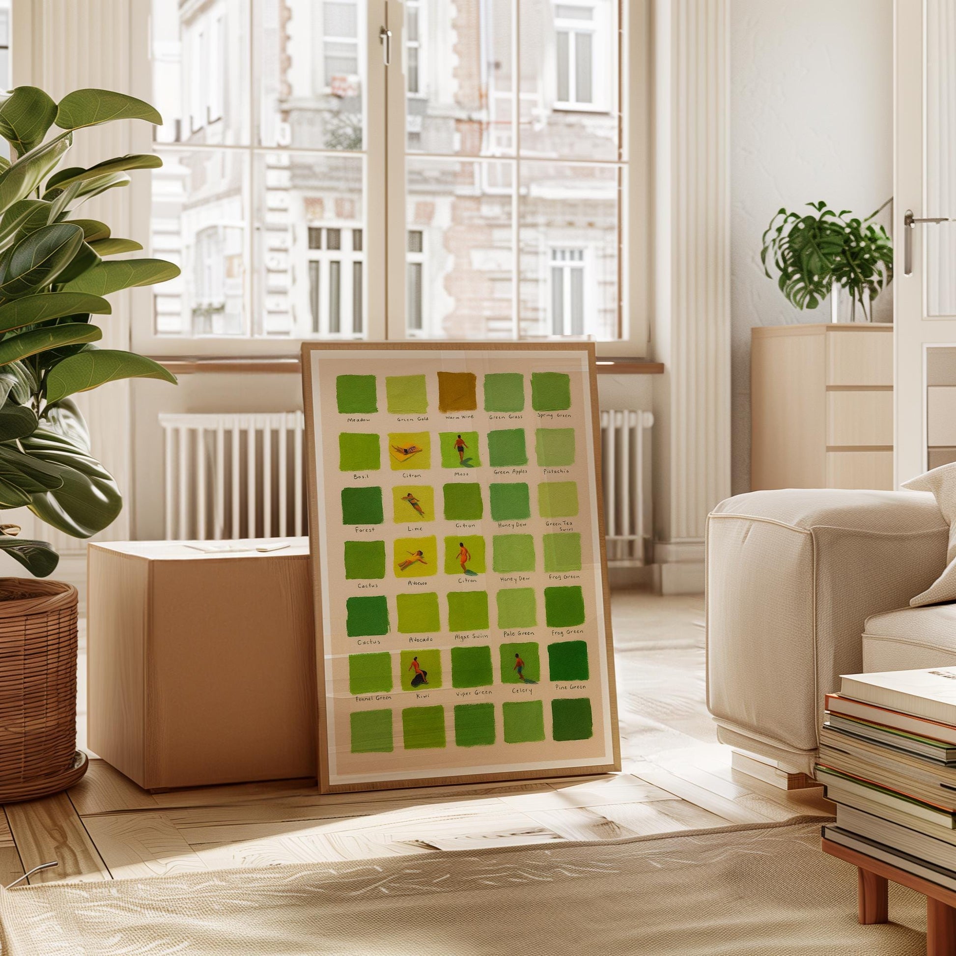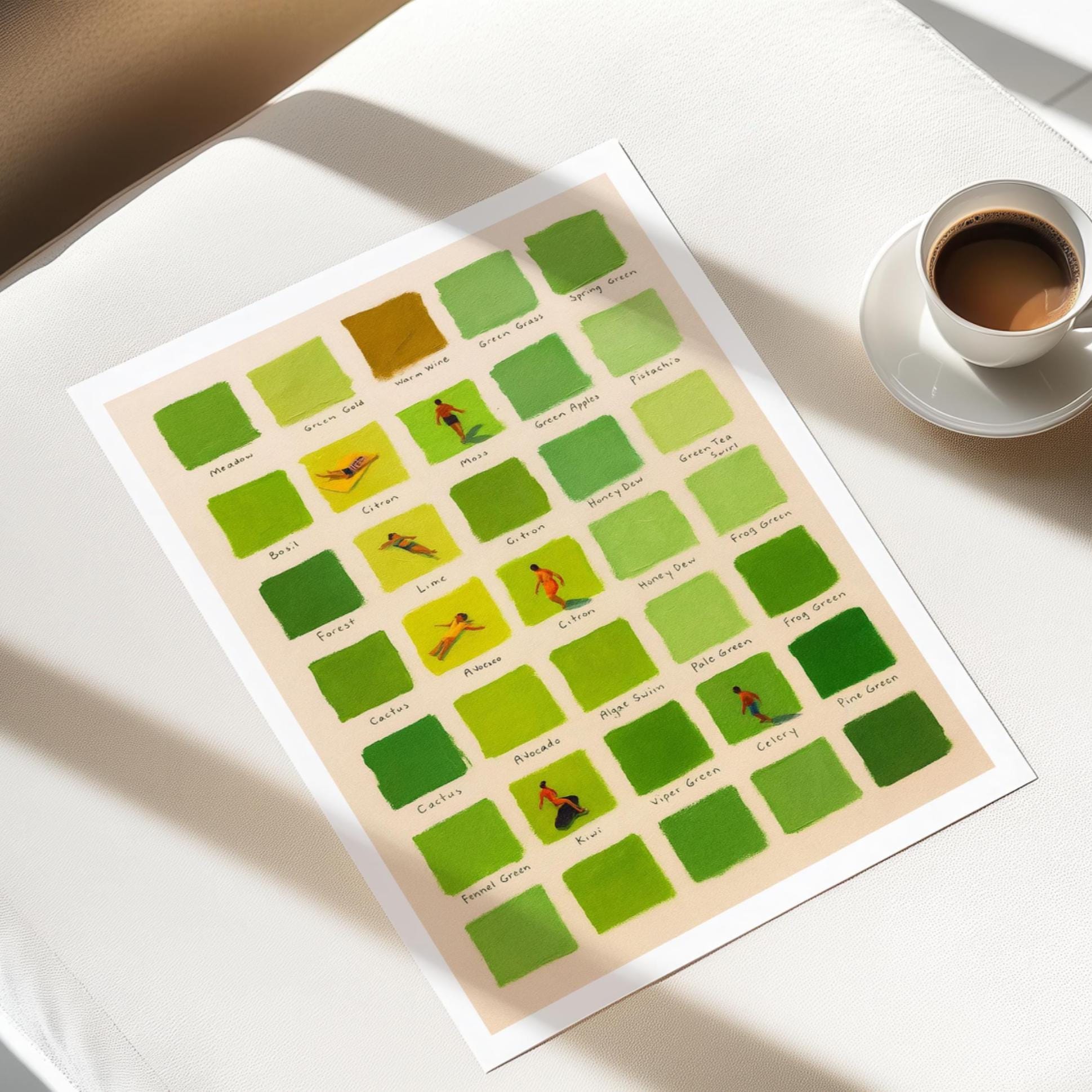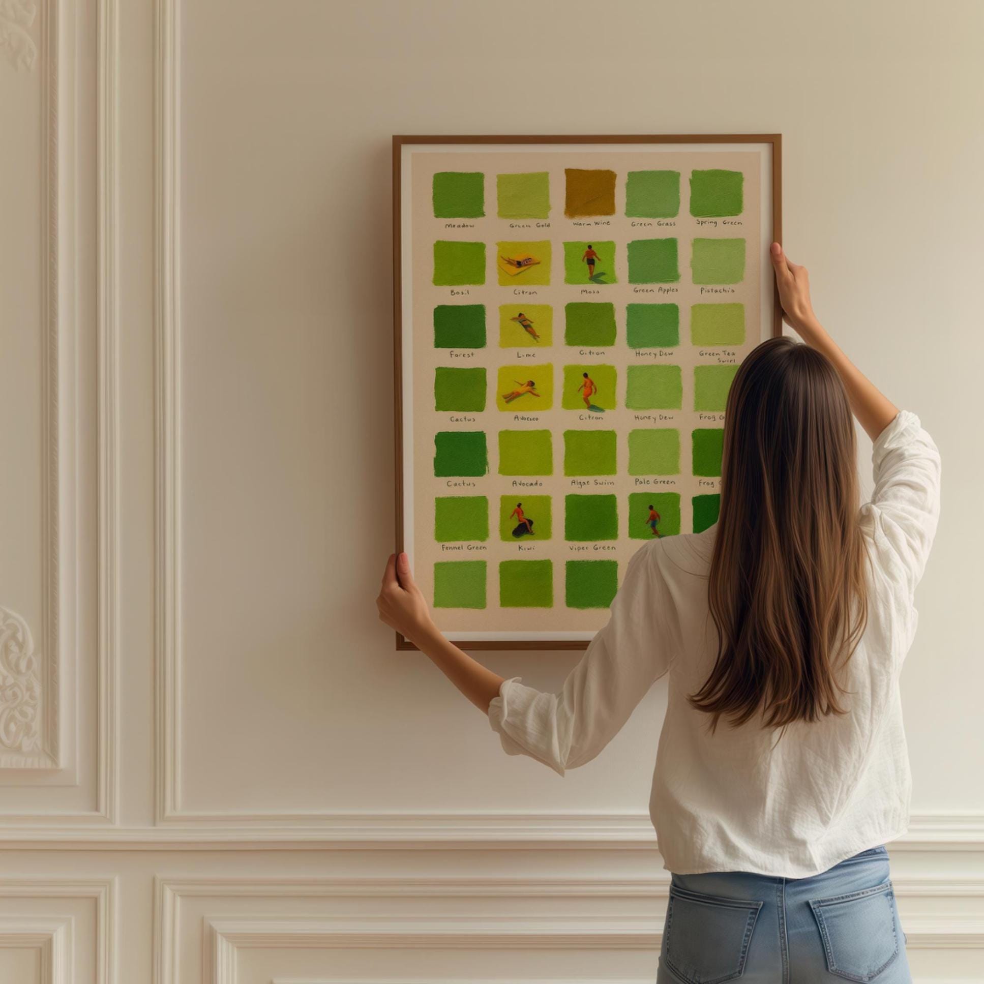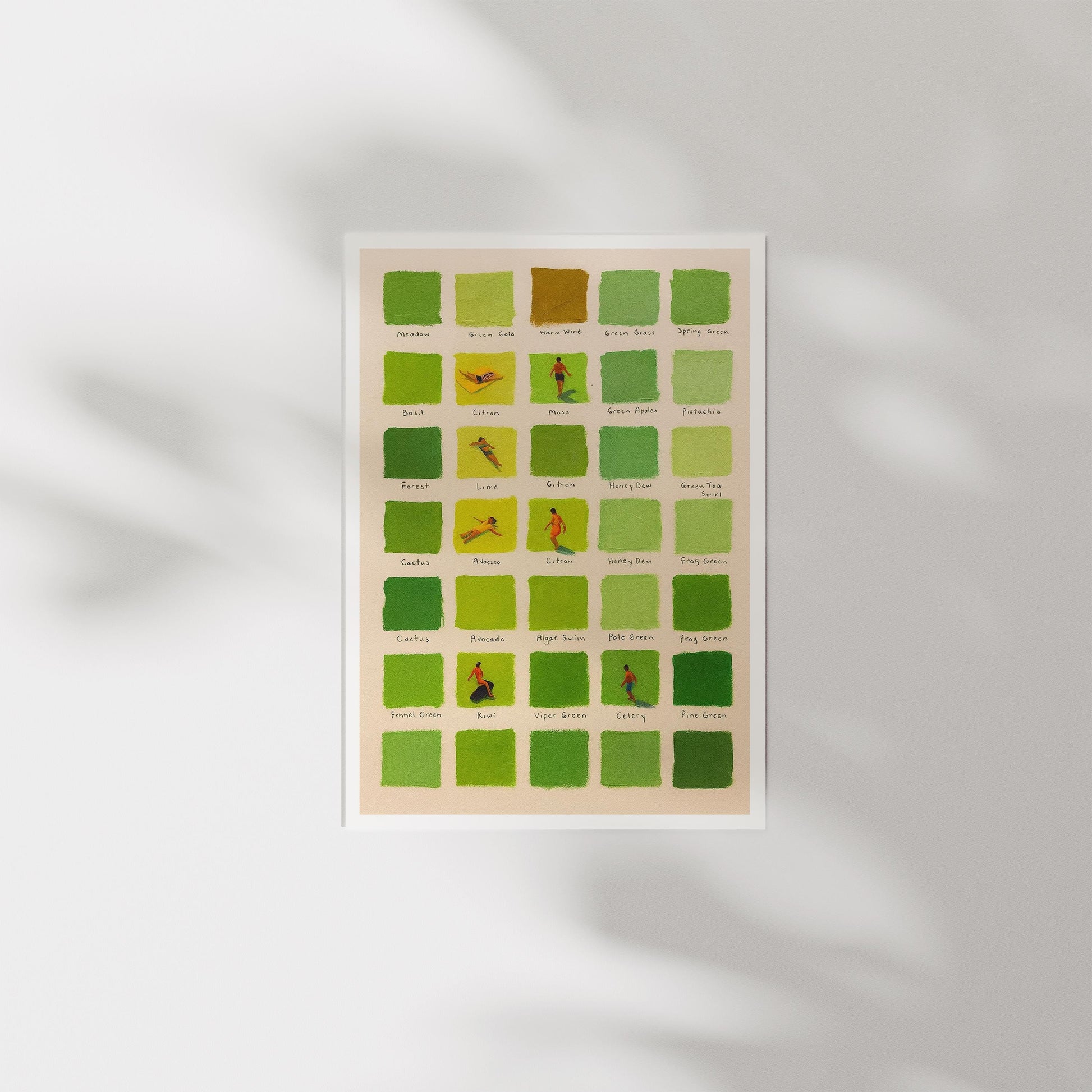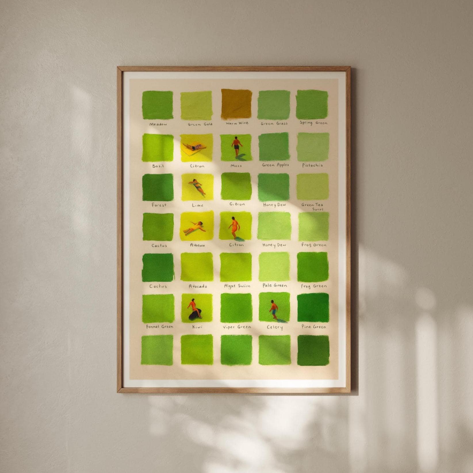 Mid Century Modern Green Stripe Print: Pastel Swimmers Wall Art