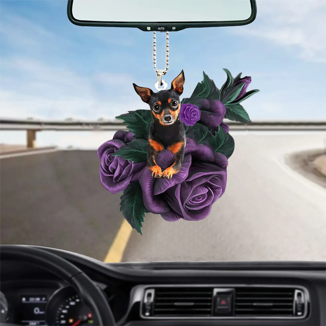 Miniature Pinscher In Purple Rose Car Hanging Ornament, Christmas Decoration