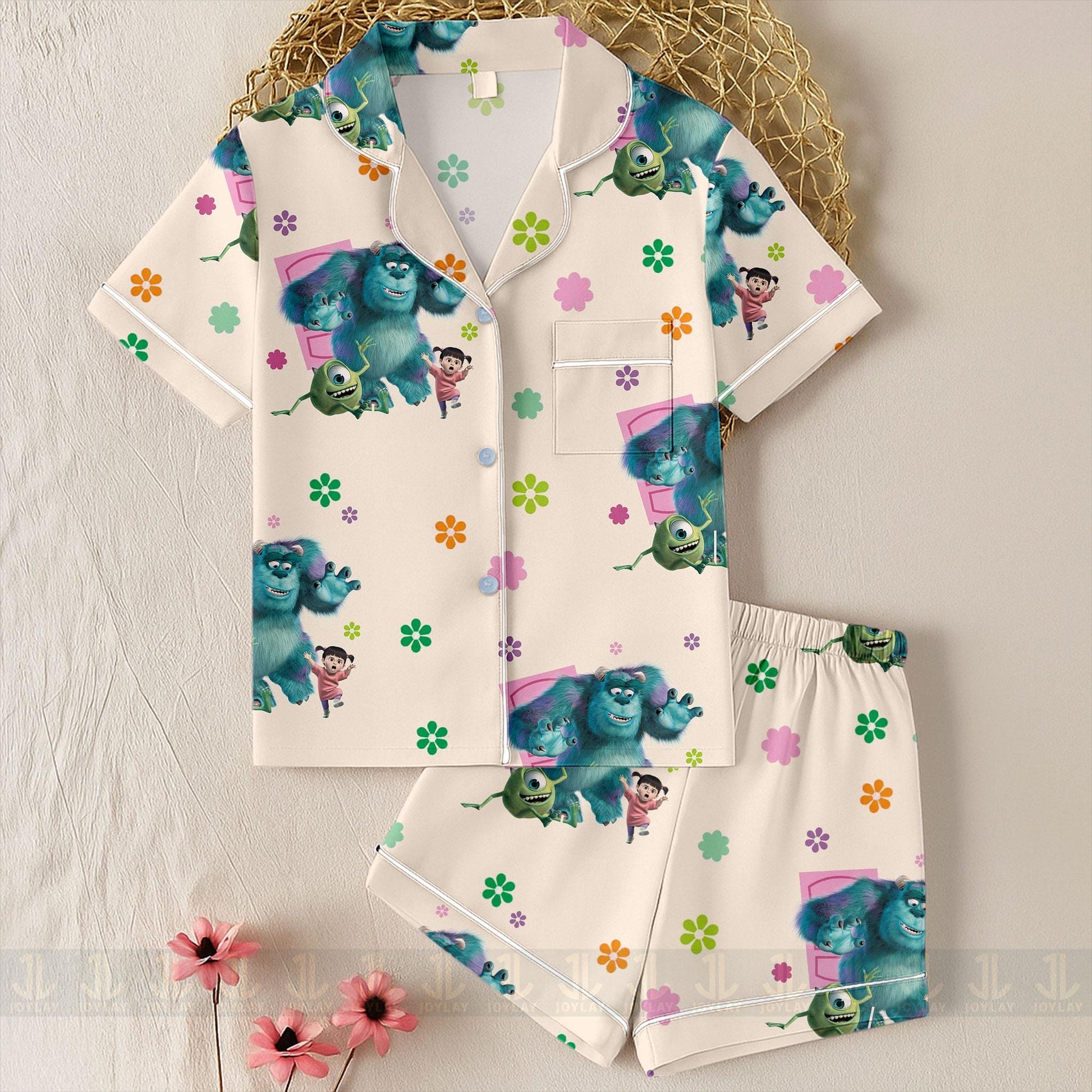 Monster Mike James Sullivan Unisex Satin Pajamas Set, Spooky Season Pajamas , Long Sleeve And Short Styles