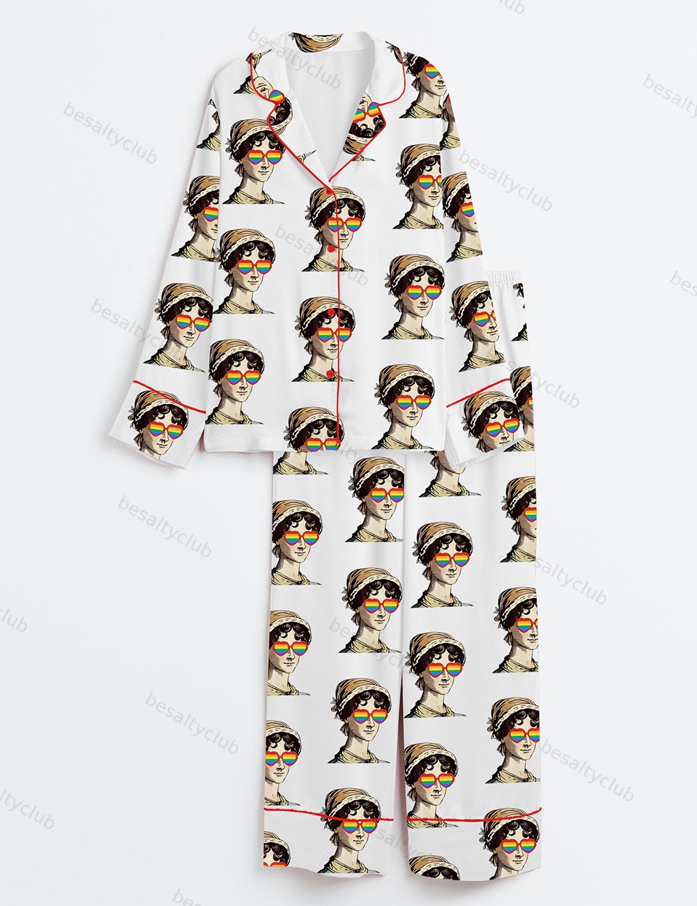 More Pride Less Prejudice LGBTQ Pride Month Print Long Sleeve Satin Pajama Set