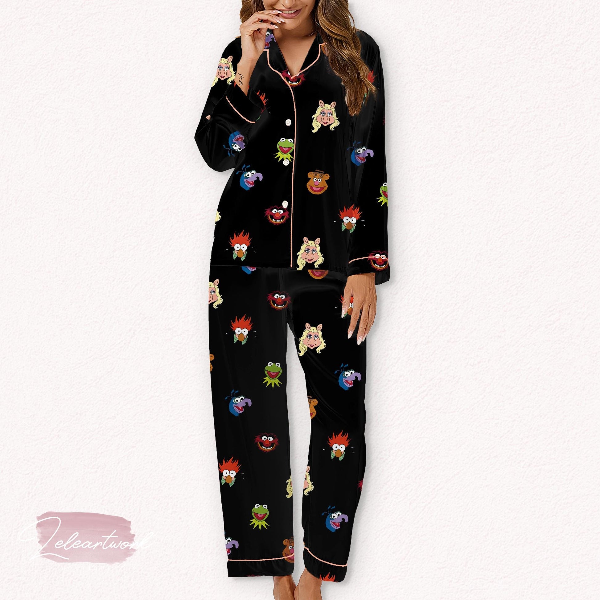 Muppet Set – Cute Satin Pajamas Featuring Kermit, Miss Piggy, Animal & More | Cozy Nostalgic Sleepwear for Muppet Show Fans