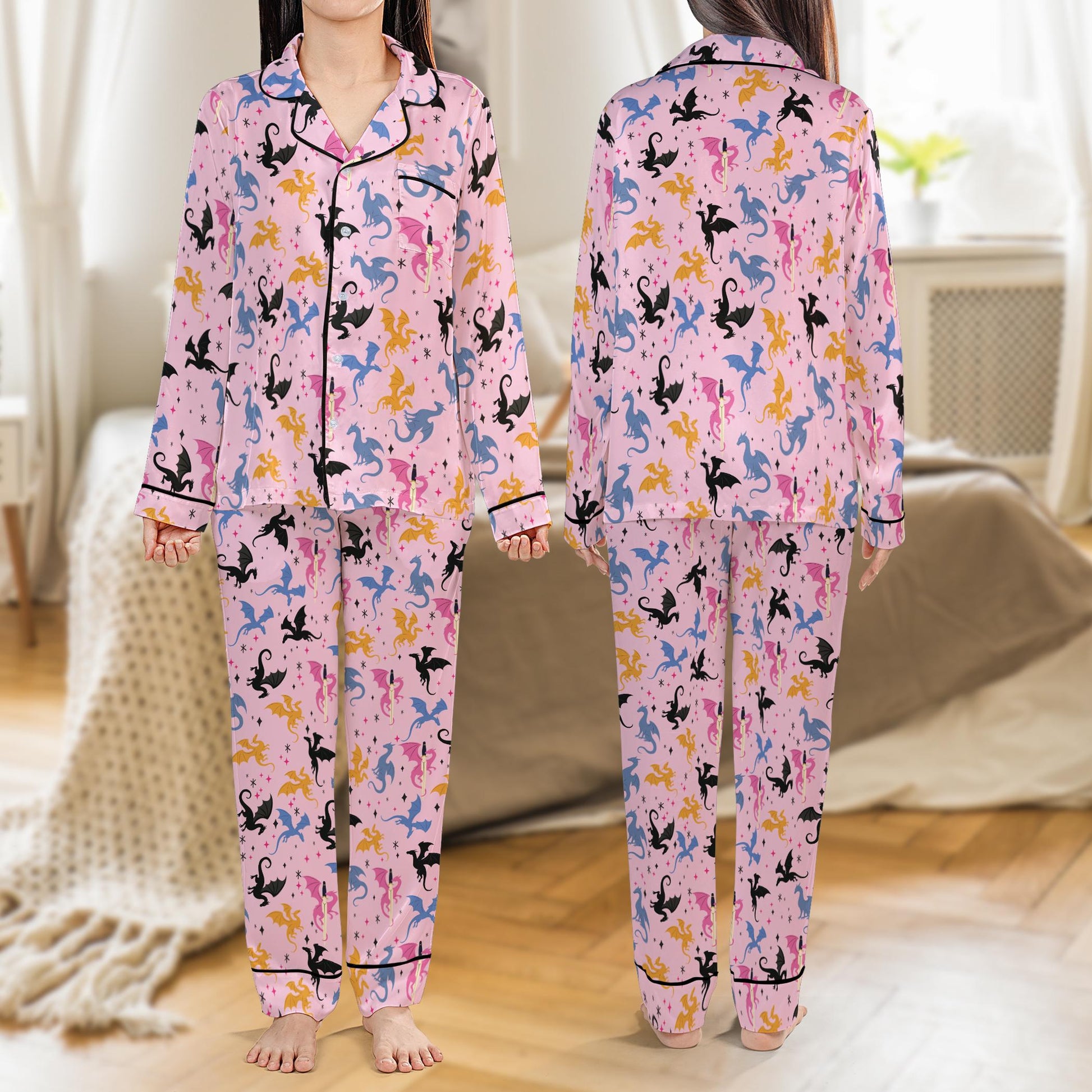 Mystical Dragon Pajama Set, Fantasy Book Sleepwear for Readers, Romantasy Nightwear, Book Lover Gift, Short Long Sleeve Pajama Set for Women
