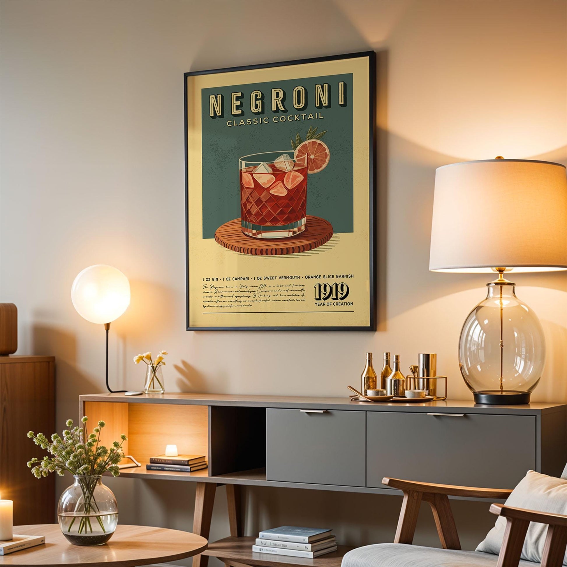 Negroni Cocktail Print, Negroni Cocktail Poster, Bar Wall Art, Classic Bar Cart Art Prints, Retro Cocktail Print, Bar Accessories