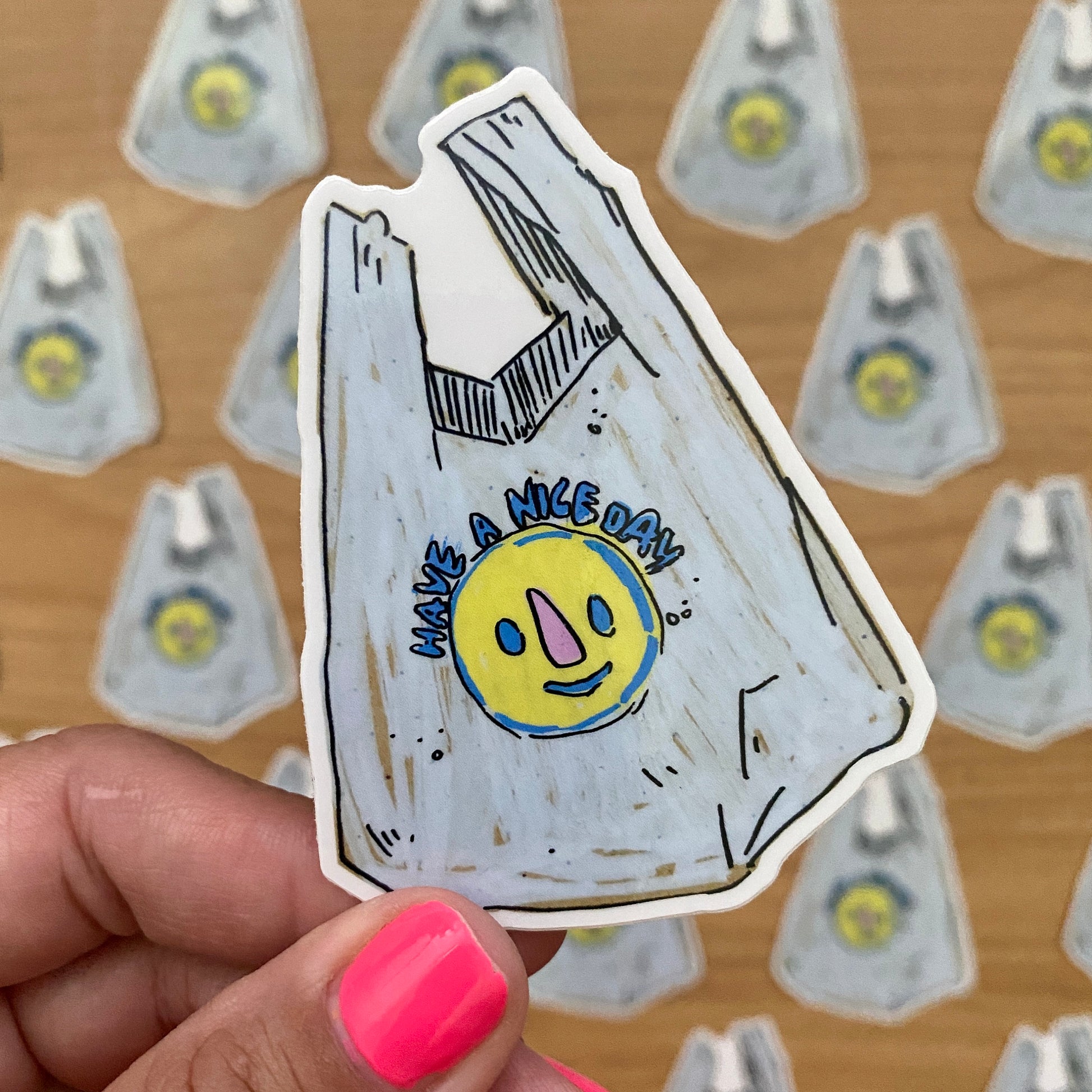Nice Day Grocery Bag Icon | 3" Sticker Decal | Water-Resistant | Grocery Shopper Tote