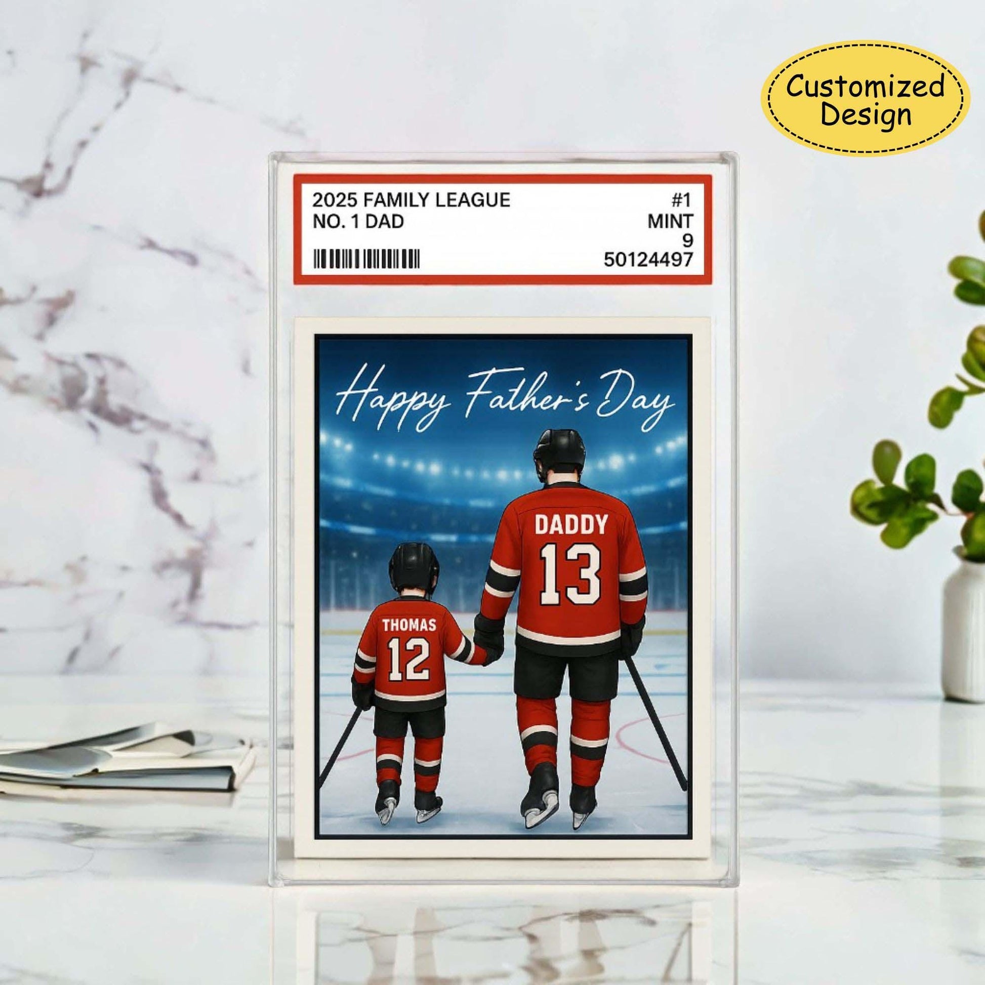 No. 1 Dad & Kids Ice Hockey Trading Card Style Acrylic Plaque, Personalized Father's Day Acrylic Block Plaque, Custom Family Acrylic Block