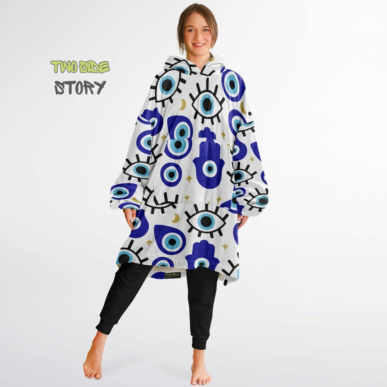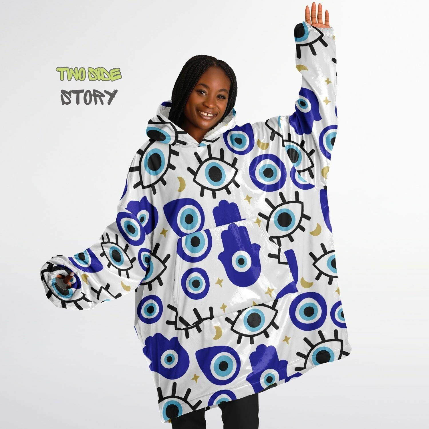 Novelty Evil Eye Print Snug Hoodie,Mykonos Eye Printed Hooded Blanket with Sleeves,Lounge Wear,Unique,Novelty Gifst,Birthday Christmas Gifts