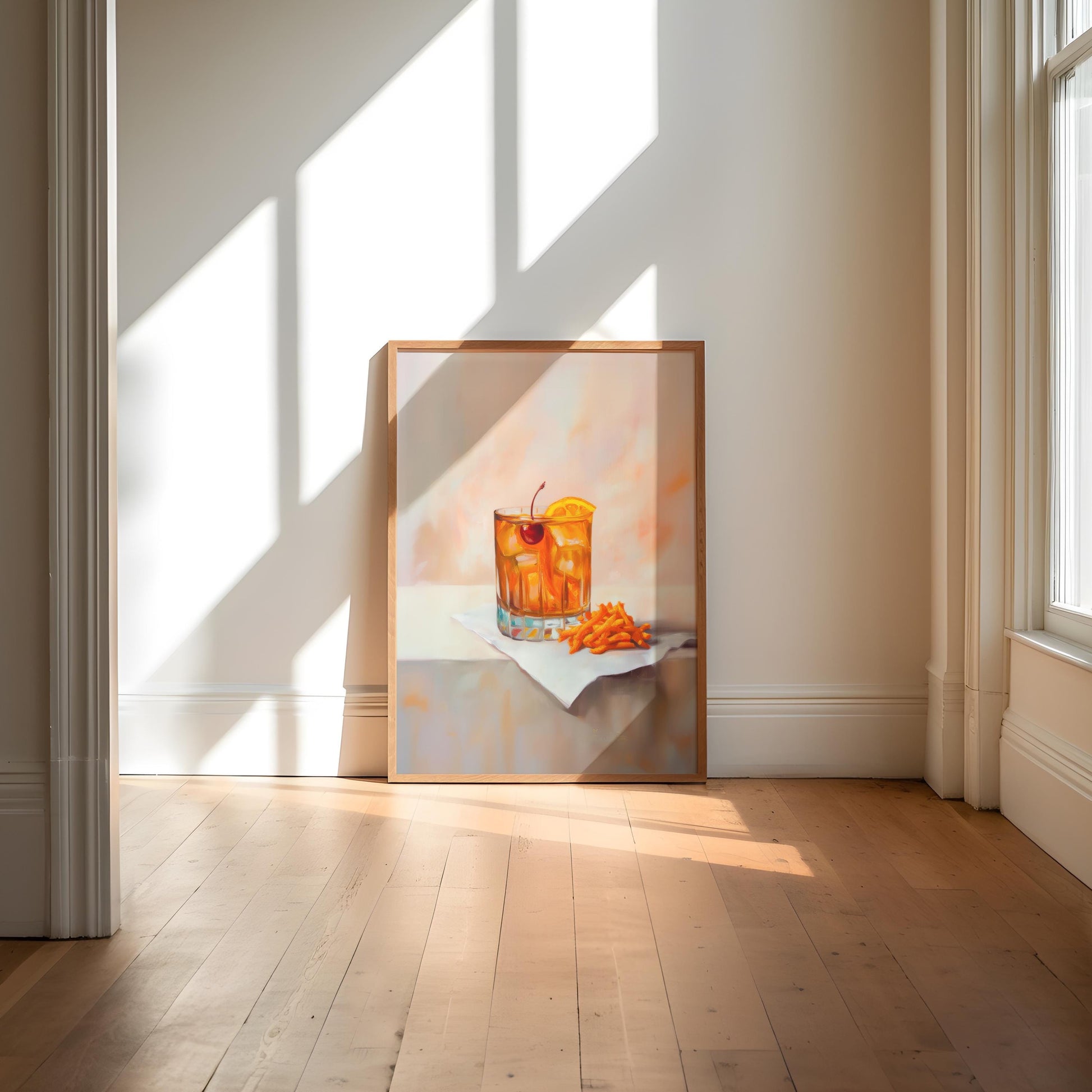 Old Fashioned Cocktail & Cheese Crunch Print: Quirky Bar Cart Wall Art