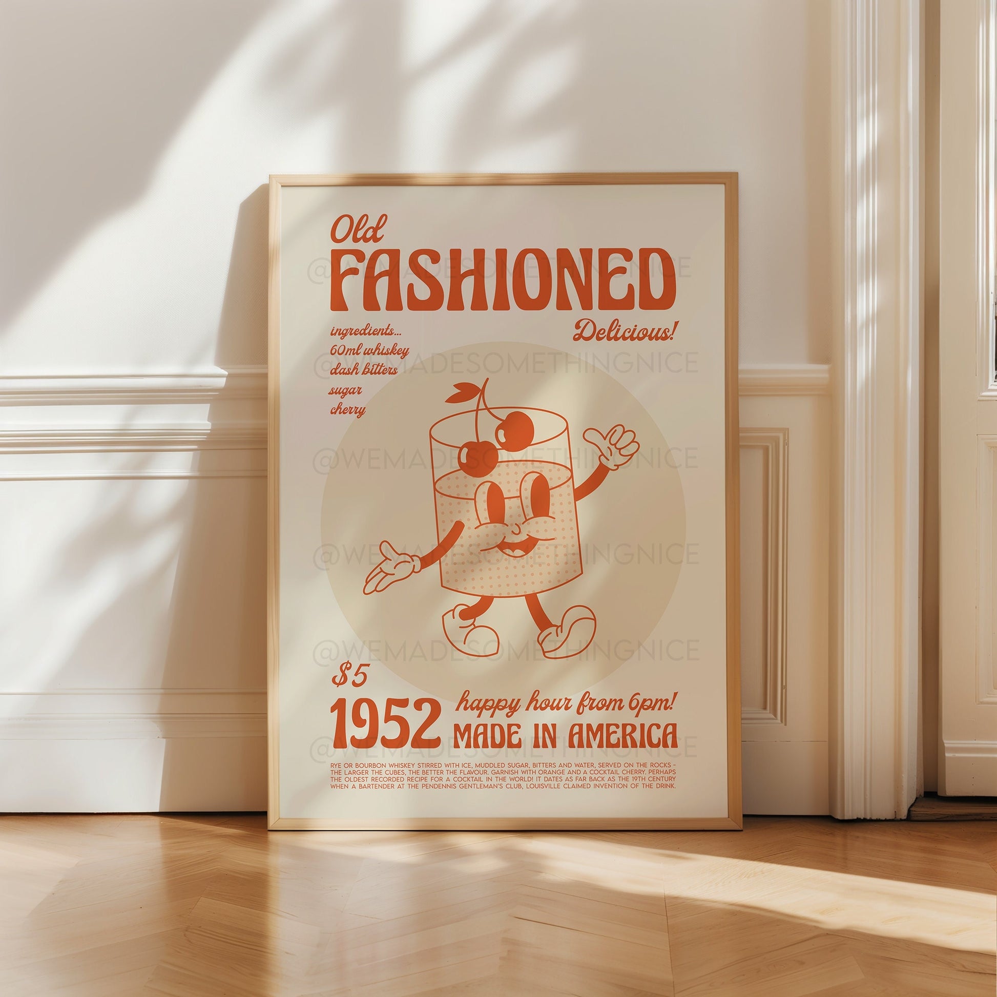 Old Fashioned Print, Kitchen Art, Cocktail Art, Drinks Poster, French Retro, Kitchen Decor, Cocktail Poster,