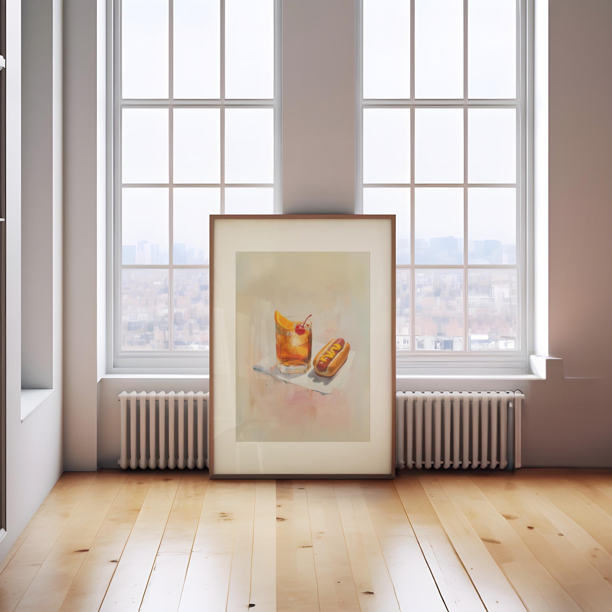 Old Fashioned with Hotdog Art Print | Cute Quirky Whimsical | Cocktail Art | Bar Cart Decor | Trendy Home Wall Art Gift | Funny Food Art