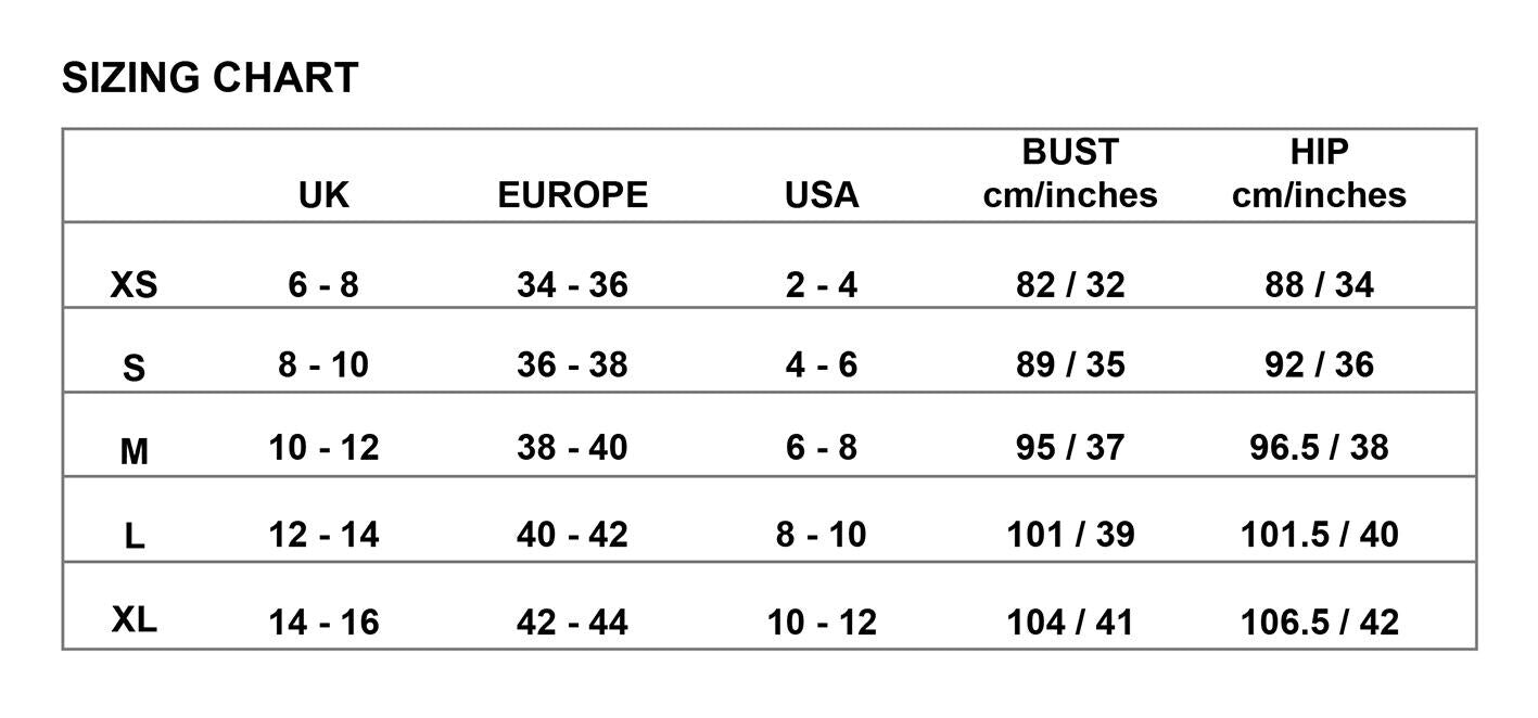 | Bust (in/cm) | Shoulder (in/cm) | Sleeve (in/cm) | Length (in/cm) | Waist (in/cm) | Hip (in/cm) | Length (in/cm) | |