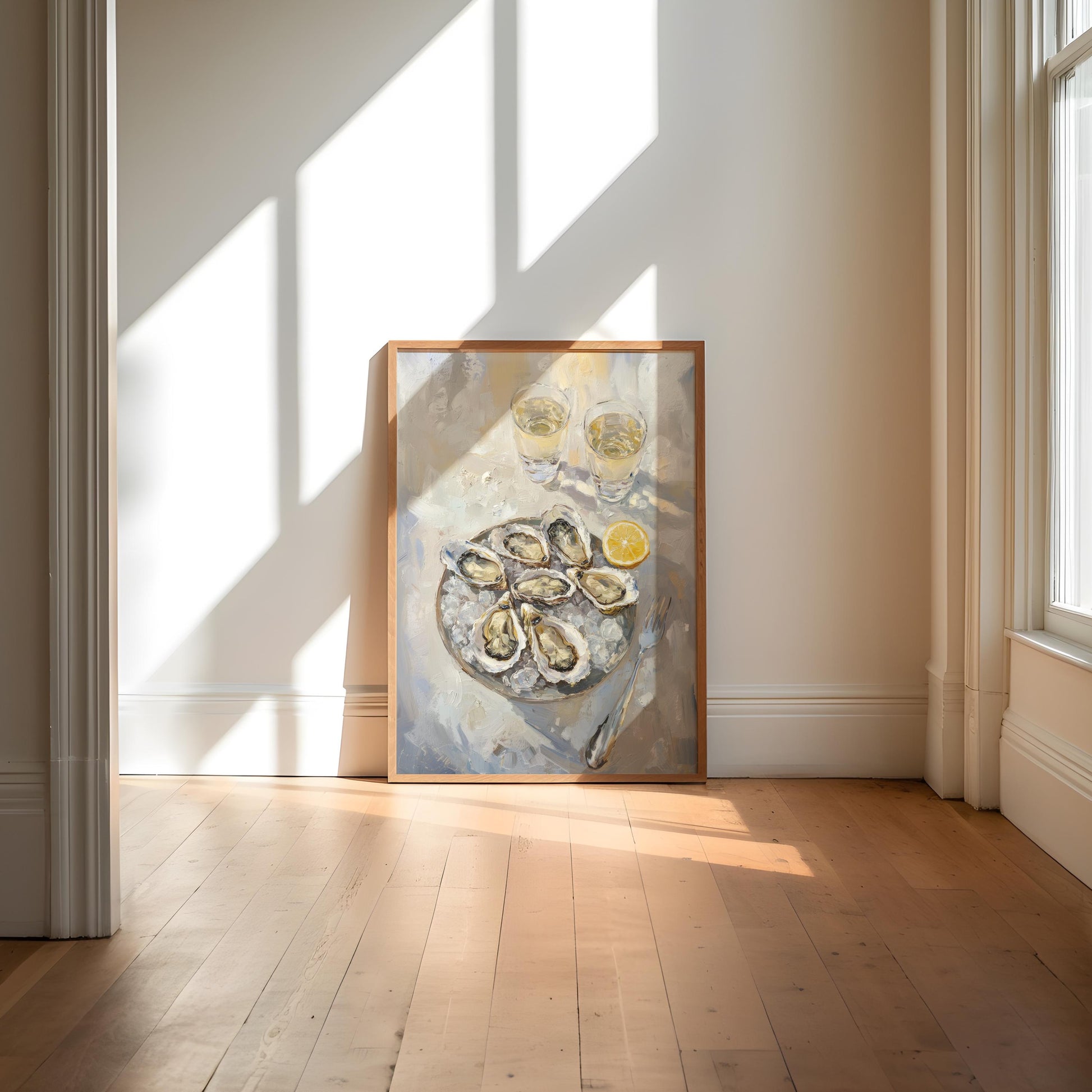 Oyster and White Wine Bar Cart Art Print | Cute Quirky Whimsical | Cocktail Art Bar Cart Decor | Coastal Wall Art | Oyster Art Print Gift