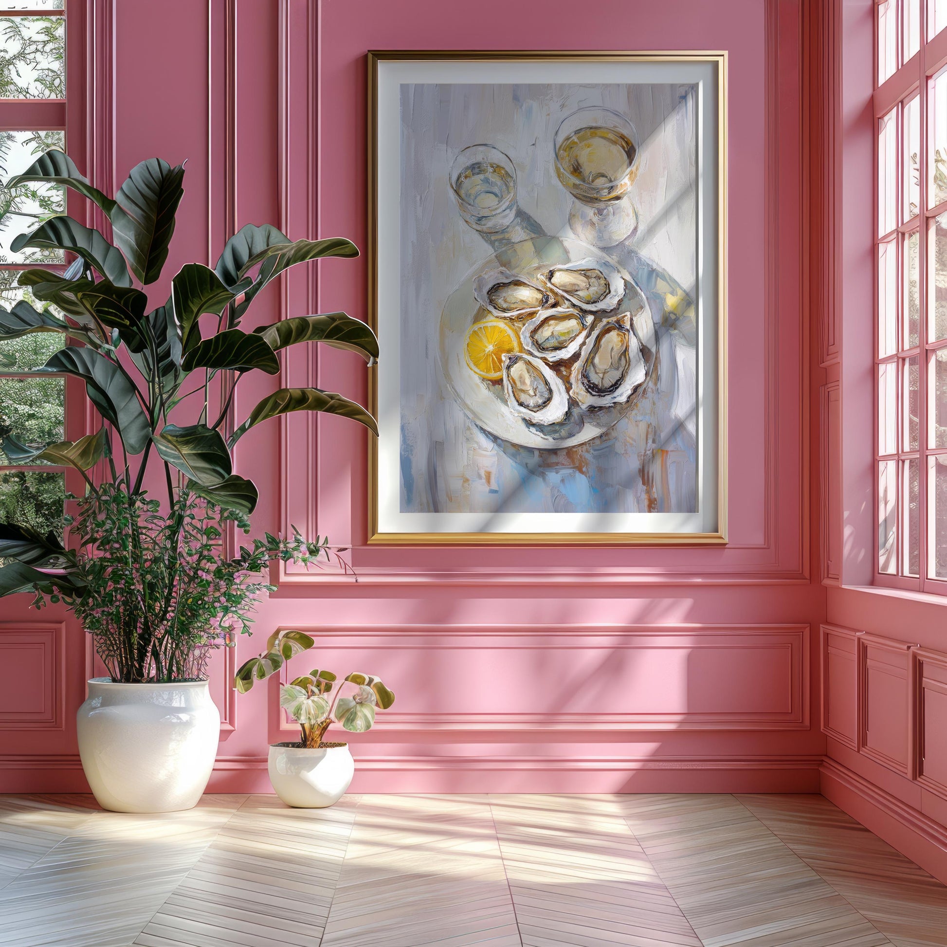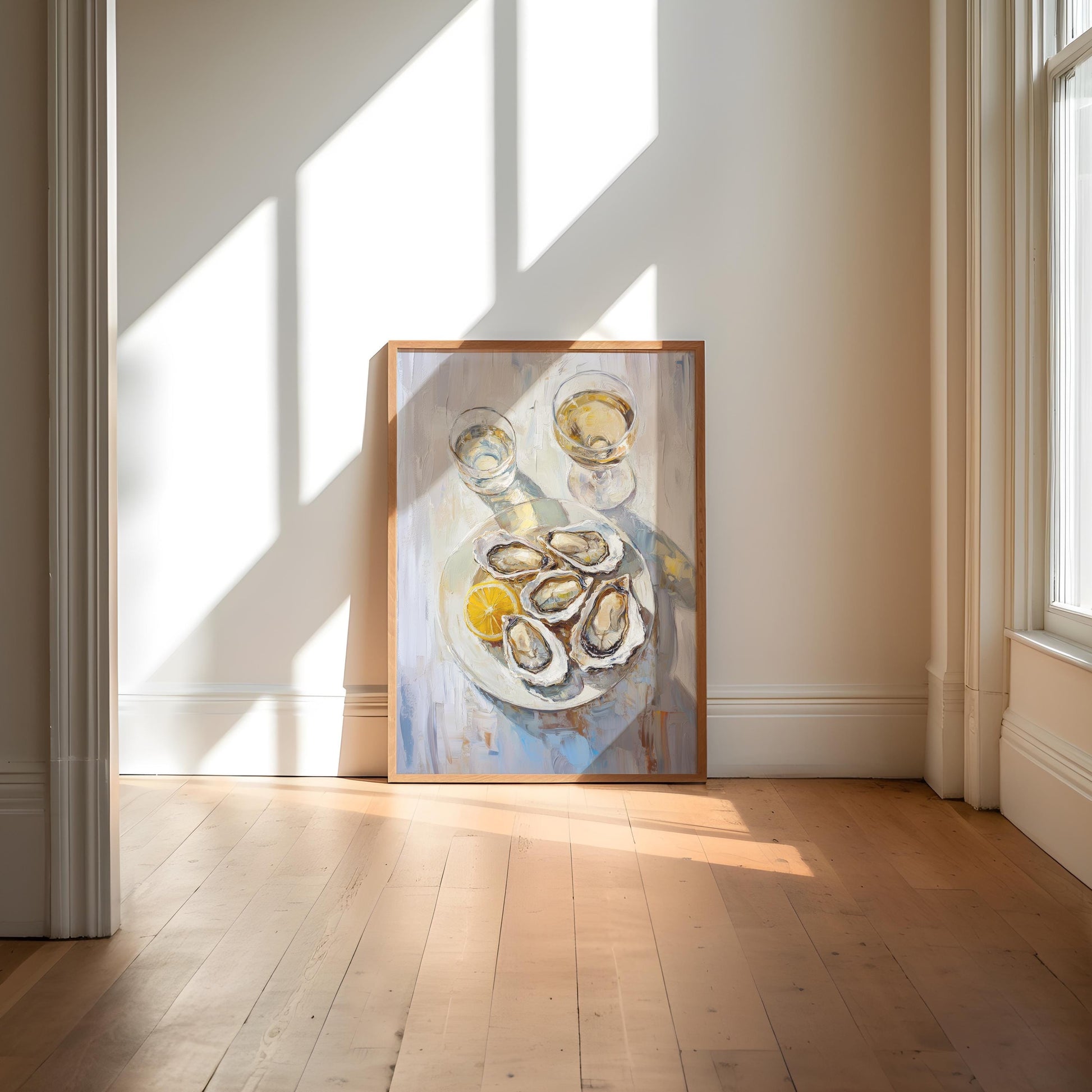 Oysters with Lemon and White Wine Bar Cart Art Print | Cute Quirky Whimsical | Cocktail Art Bar Cart Decor | Trendy Home Wall Art Gift