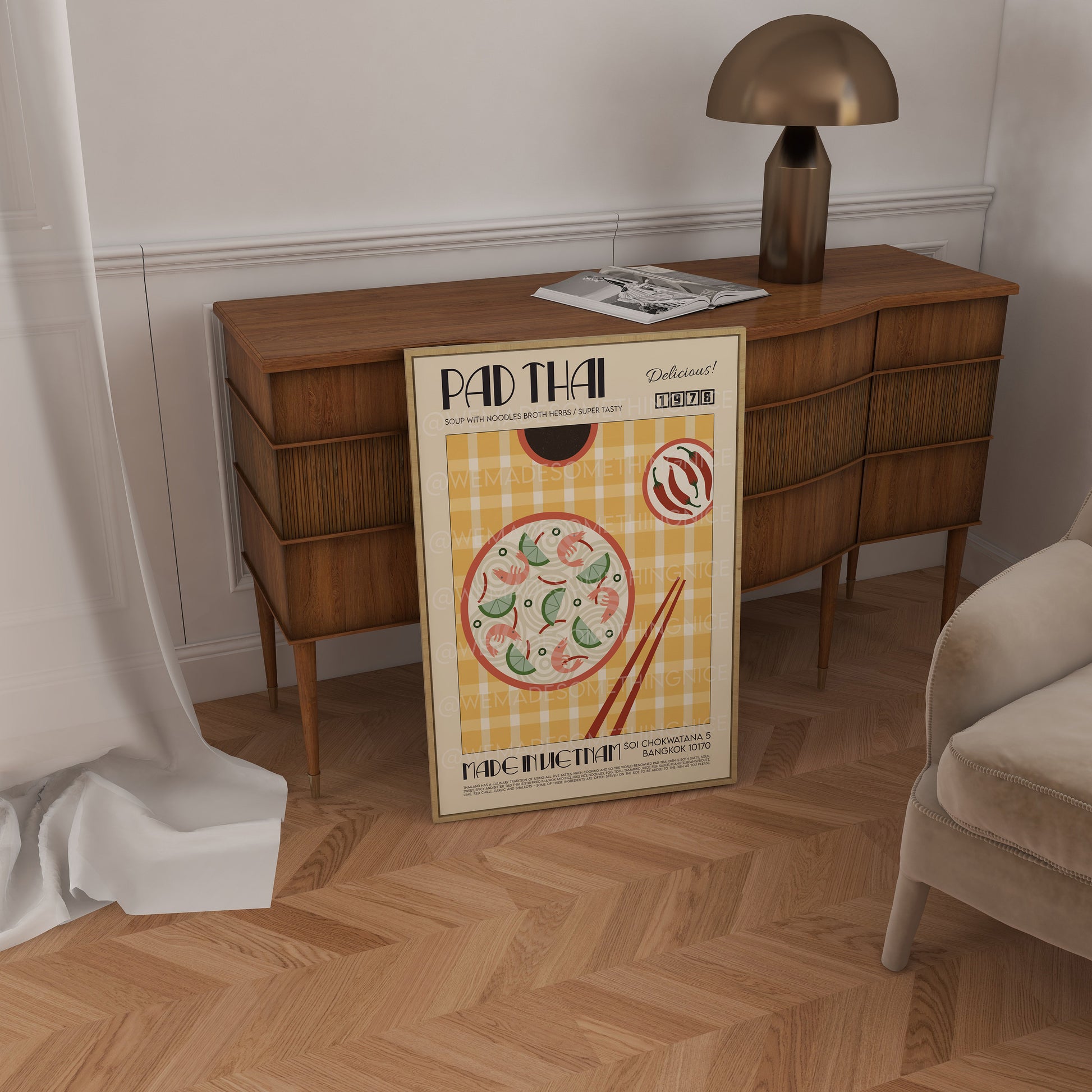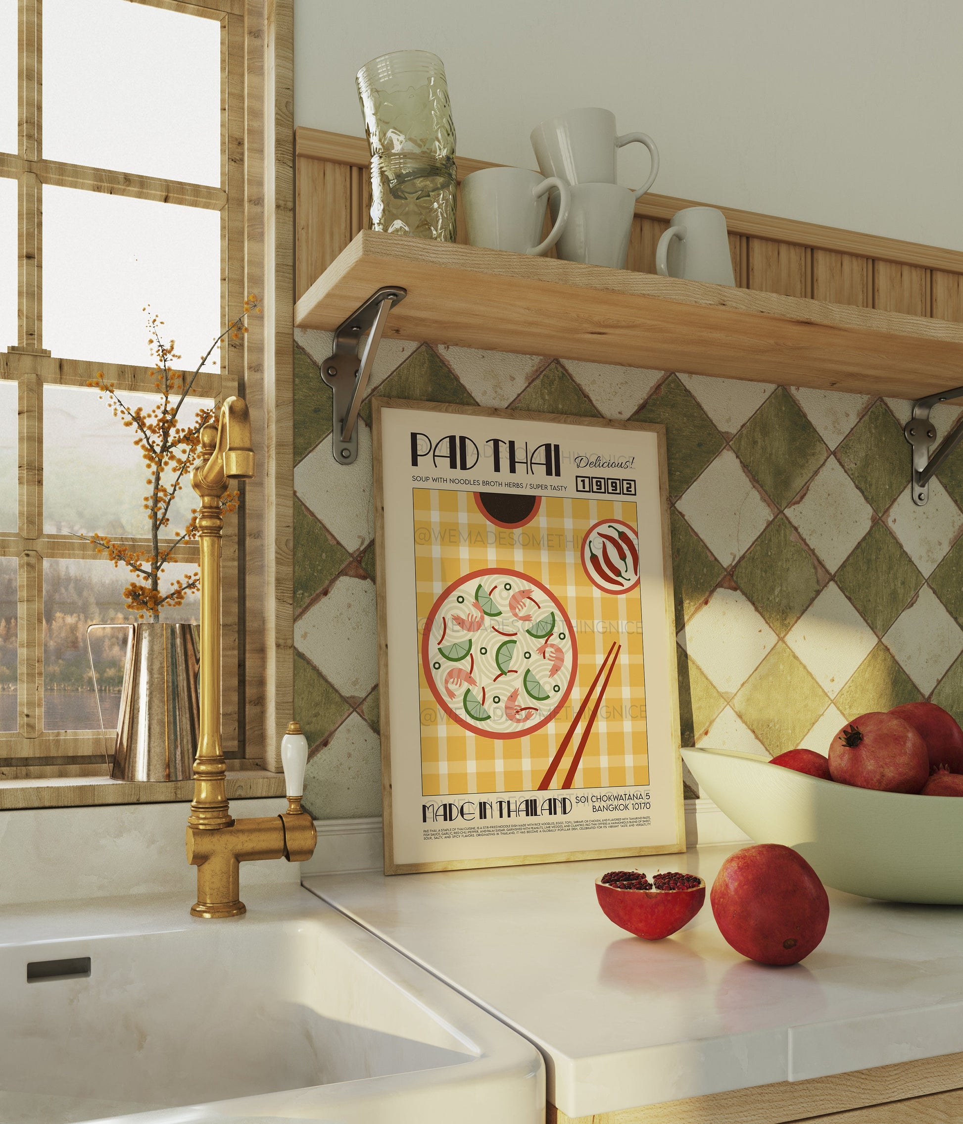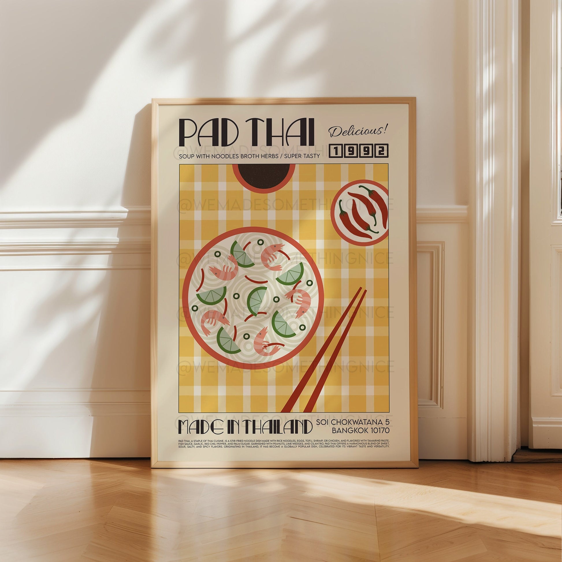 Pad Thai Poster, Kitchen Art, Kitchen Poster, Modern Kitchen Decor, Illustration, Thailand, Food, Chef Print, Bar Art, Retro Wall Art