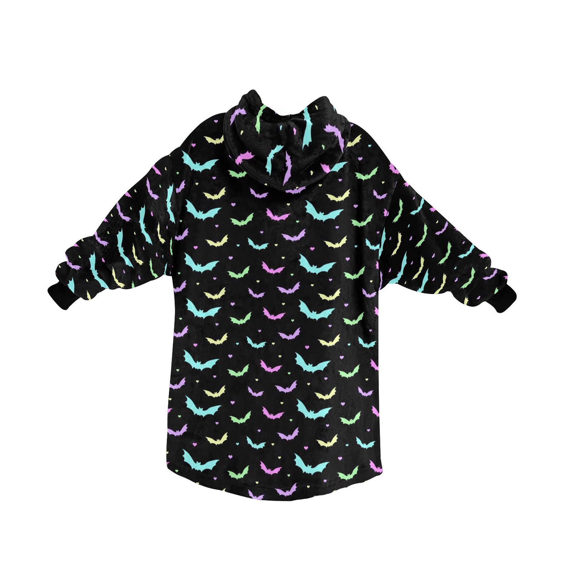 Pastel Goth Bats Spooky Halloween Theme Blanket Hooded Jumper Hoodie Winter Oversized Kids Adults
