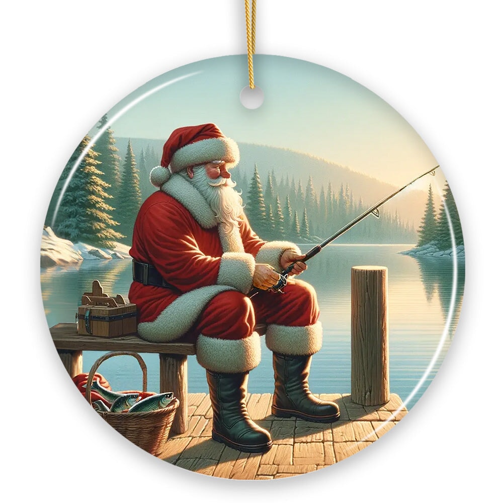 Peaceful Fishing Session with Santa Claus Christmas Ornament, Gift for Anglers