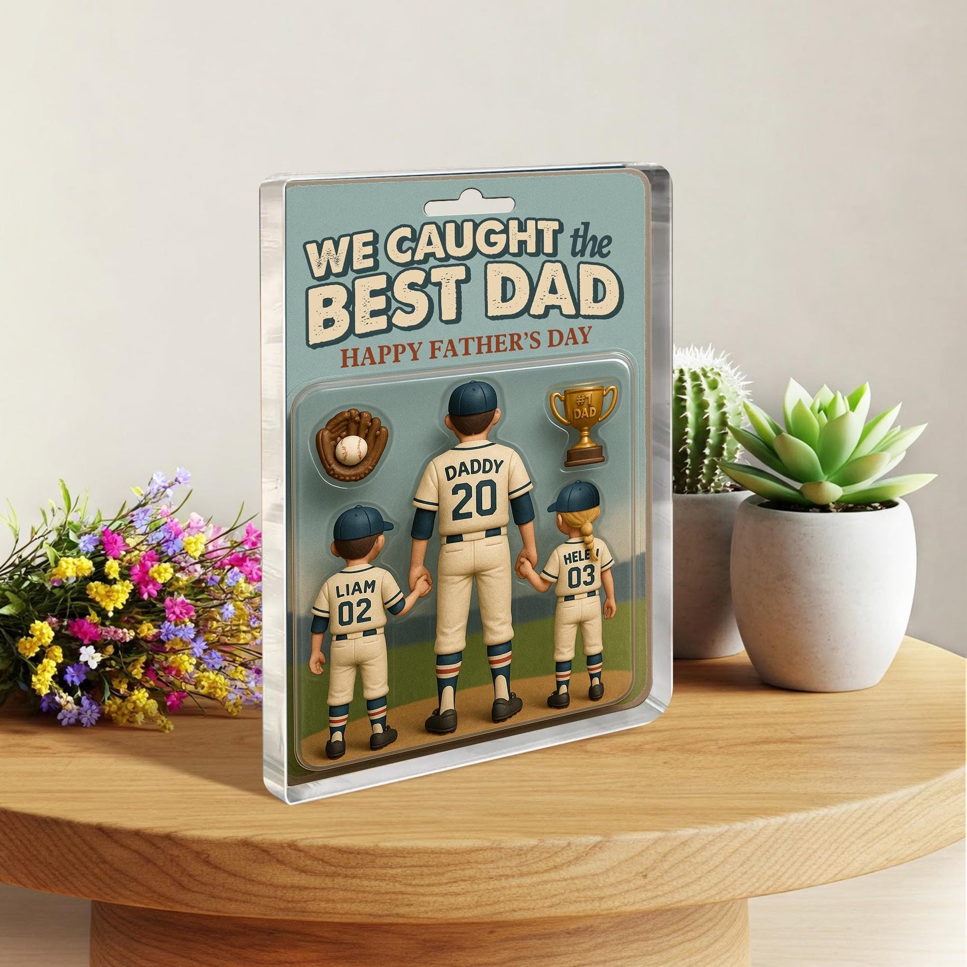 Personalize We Caught The Best Dad Baseball Figure Acrylic Block Gift, Baseball Figurine Fathers Day Gift, Baseball Dad Gift, Husband Gift