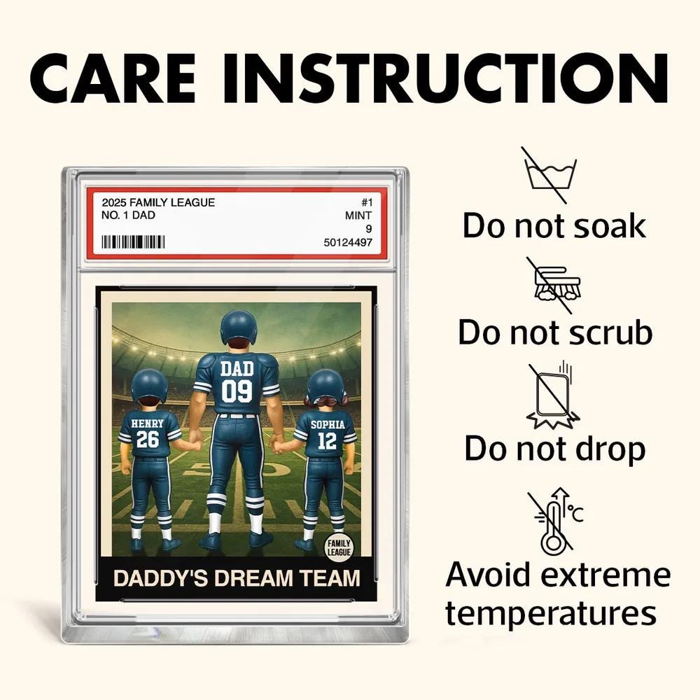 Personalized Acrylic Block Plaque Football No.1 Dad Man & Kids Sitting Trading Card Style | Football Player | Football Lover for Dad Grandpa