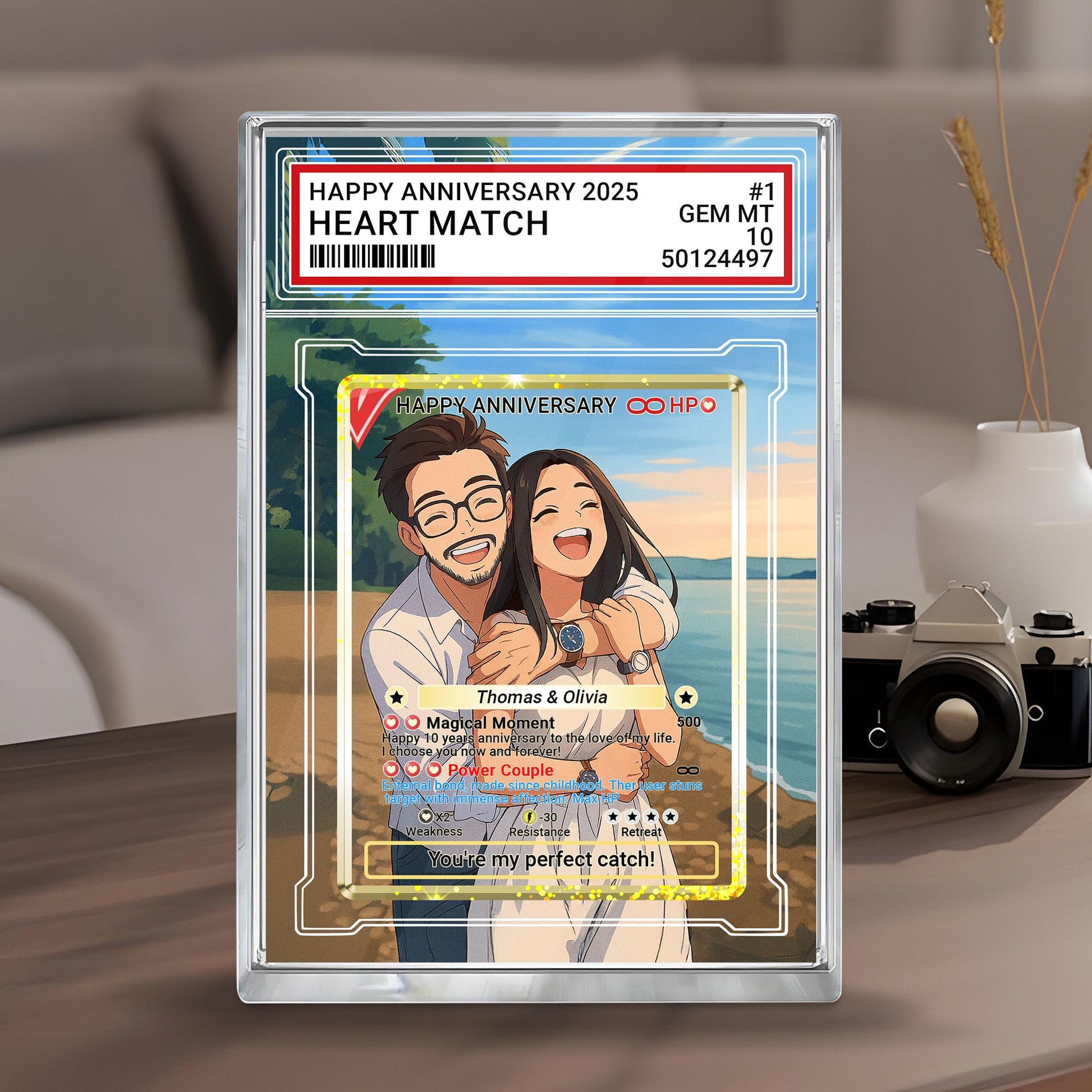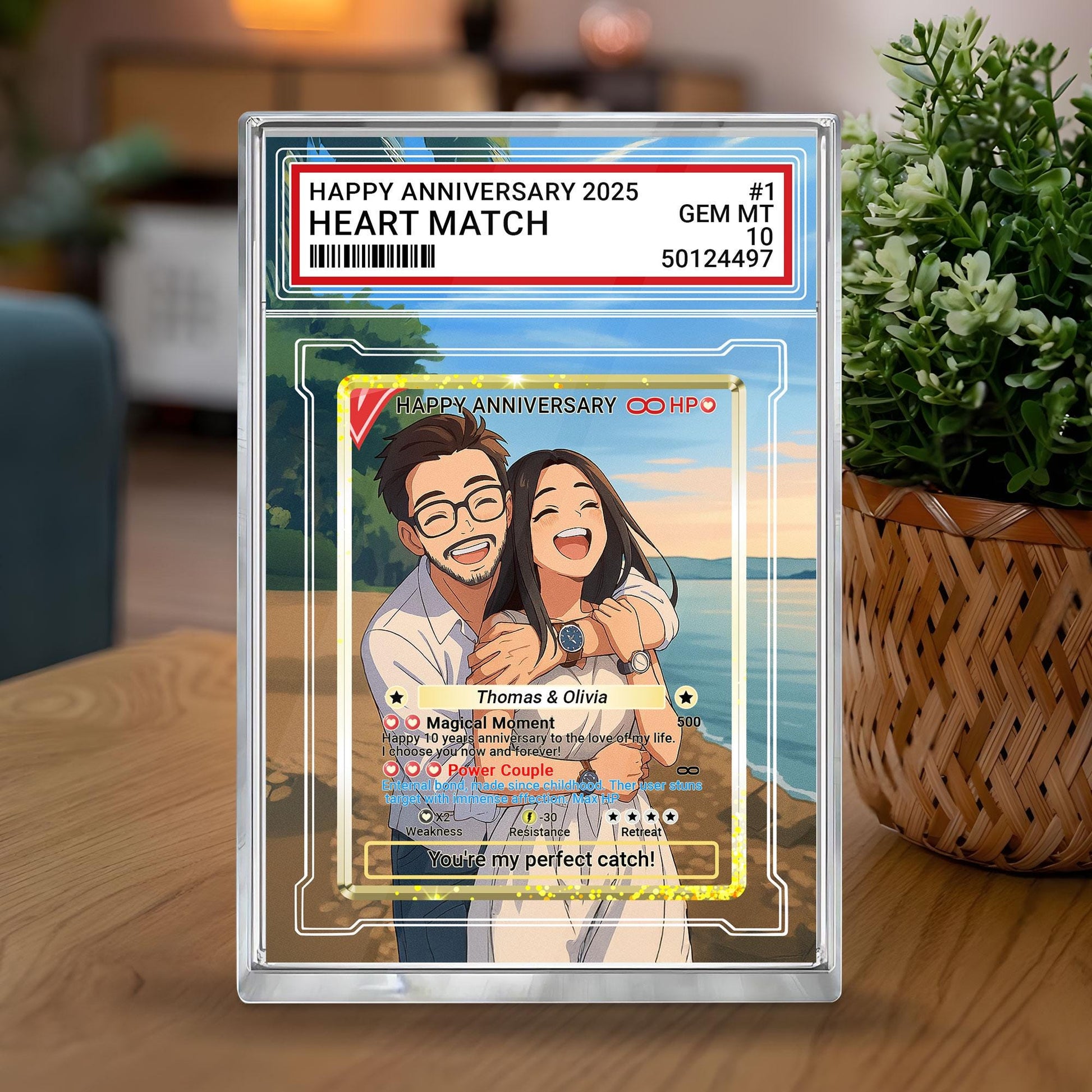 Personalized Anniversary Acrylic Block Card with Custom Couple Photo in Anime Style, Romantic Keepsake, Unique Pokemo-Inspired Wedding Gift