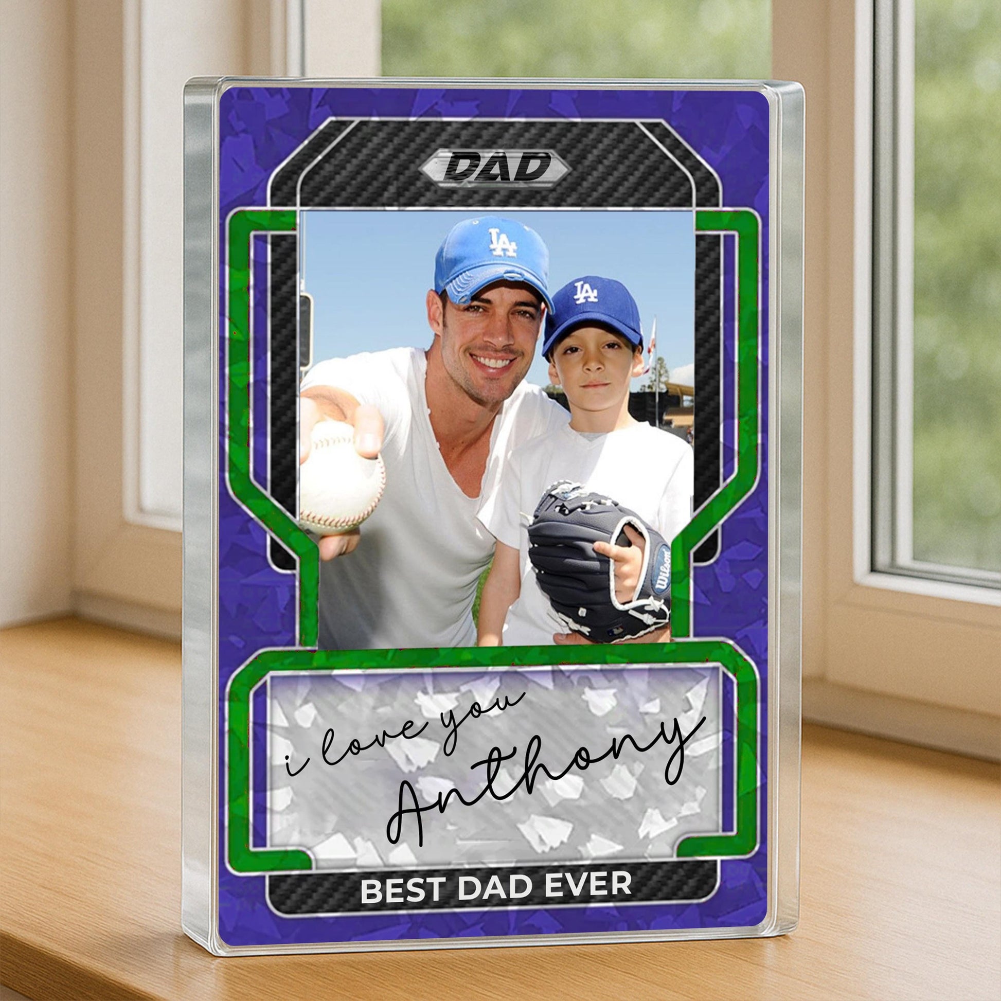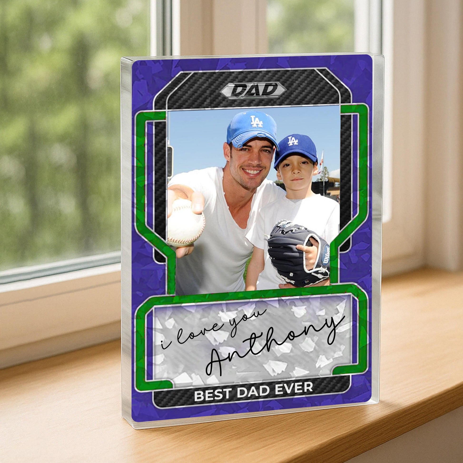 Personalized Baseball Dad Plaque with Kids Photo, Custom Acrylic Sports Card Style, Father’s Day Gift for Him Best Dad Ever Acrylic Block