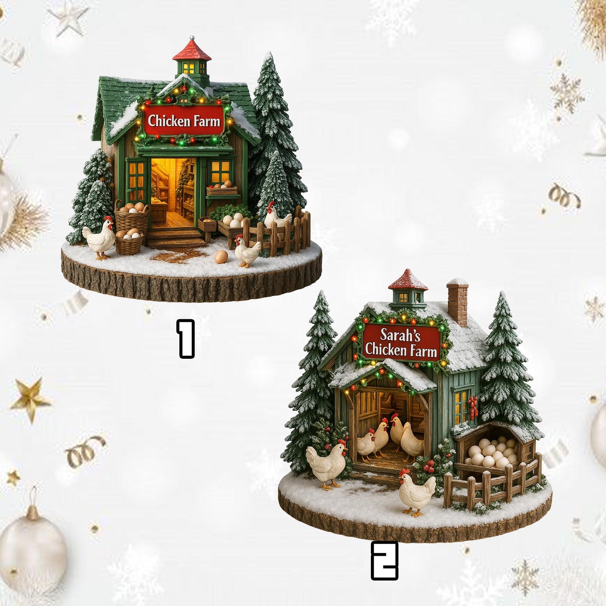 Personalized Chicken Farm Ornament, Custom Chicken Ornament 2D Flat, Farmhouse Christmas Ornament, Farm Decor, Gift For Farmer,Chicken Lover