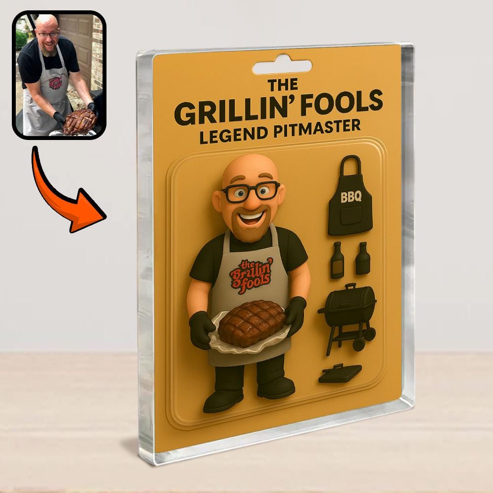 Personalized Fathers Day Gift For Dad, Custom Photo Dad Action Figure Acrylic Block, BBQ Dad Block Plaque Gift, Gift For Husband, Daddy Gift