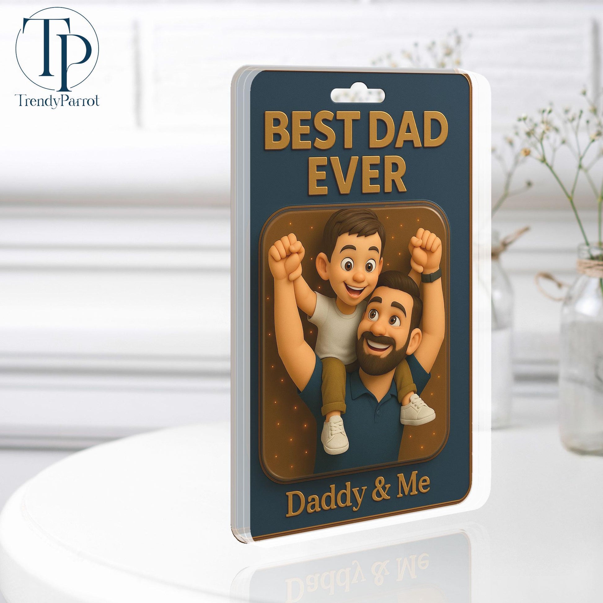 Personalized Father's Day Gift For Dad, Custom Photo Dad And Kids Action Figure Acrylic Block, Best Dad Ever Block Plaque, Gift For Husband