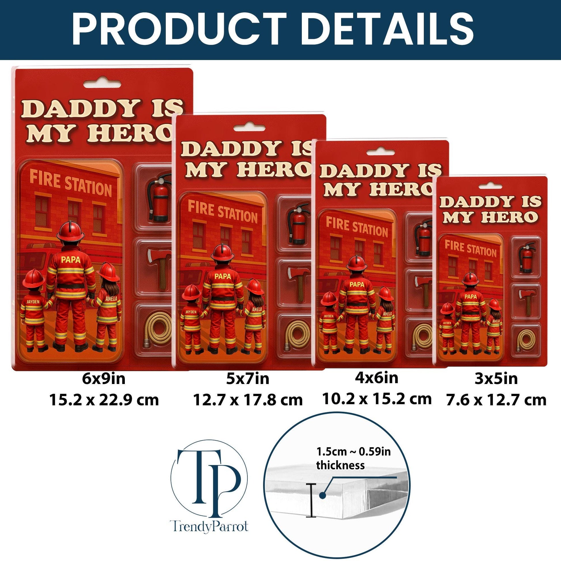 Personalized Firefighter Acrylic Block, Custom Figure Firefighter Dad Personalized Acrylic Block Plaque, Father's Day Gifts, Gift from Kids