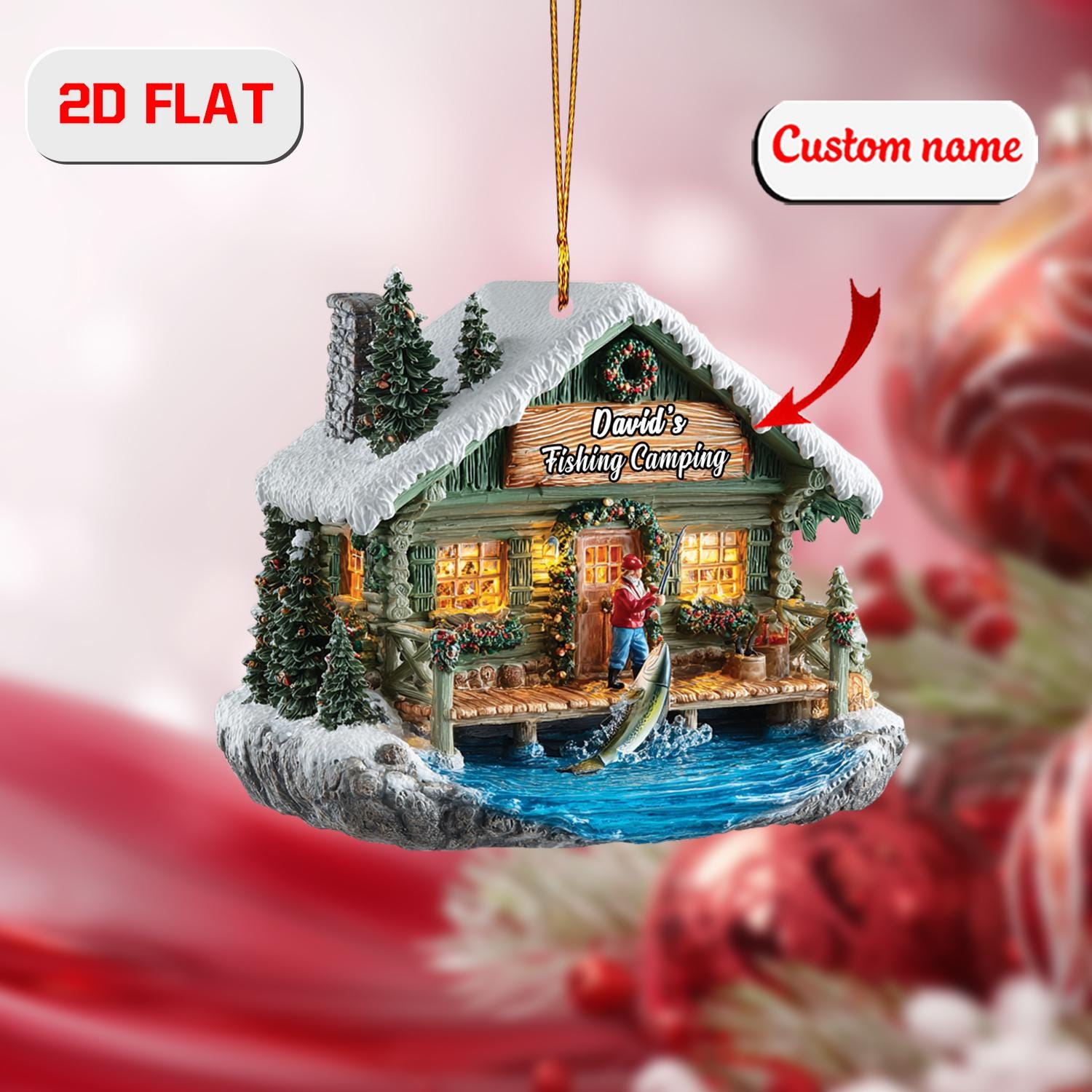 Personalized Fishing Cabin Christmas Ornament , Custom Name Camping Gift, Holiday Tree Decoration for Fisherman, Outdoor & Nature Lover