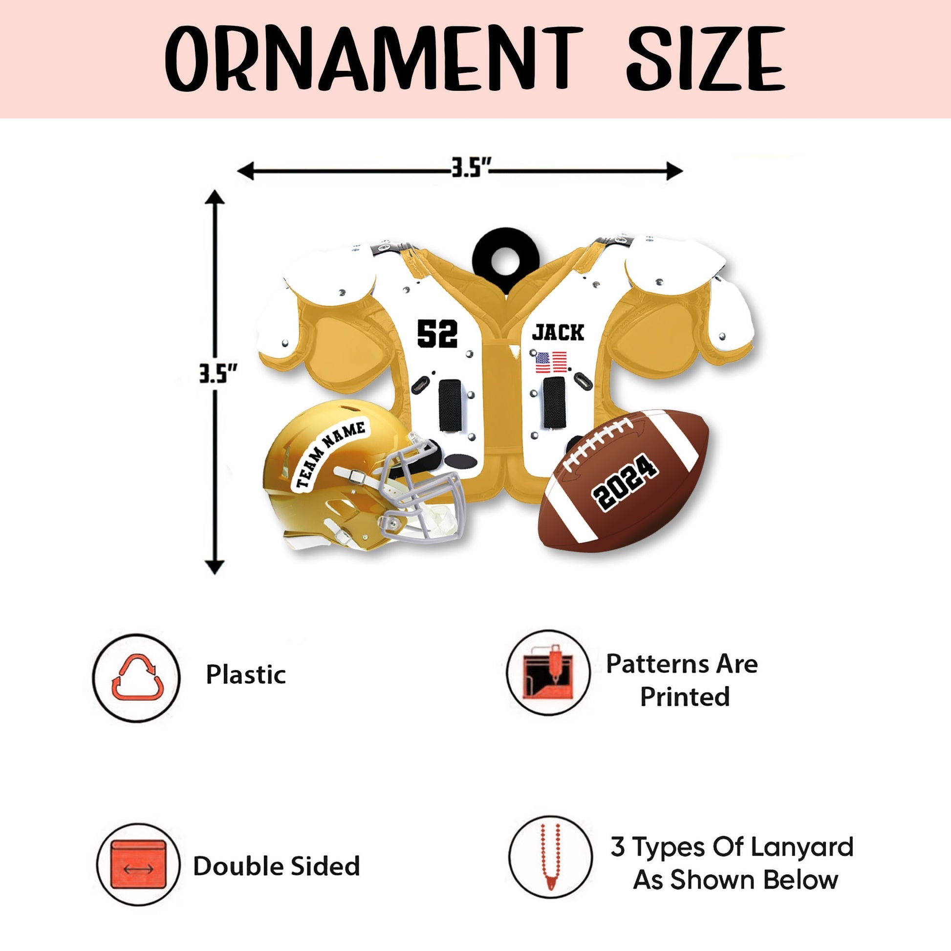 Personalized Football American Christmas Ornament, Custom Name Ornament, Football Vest Car Ornament, Flat 2D Ornament, Gift for Boyfriend