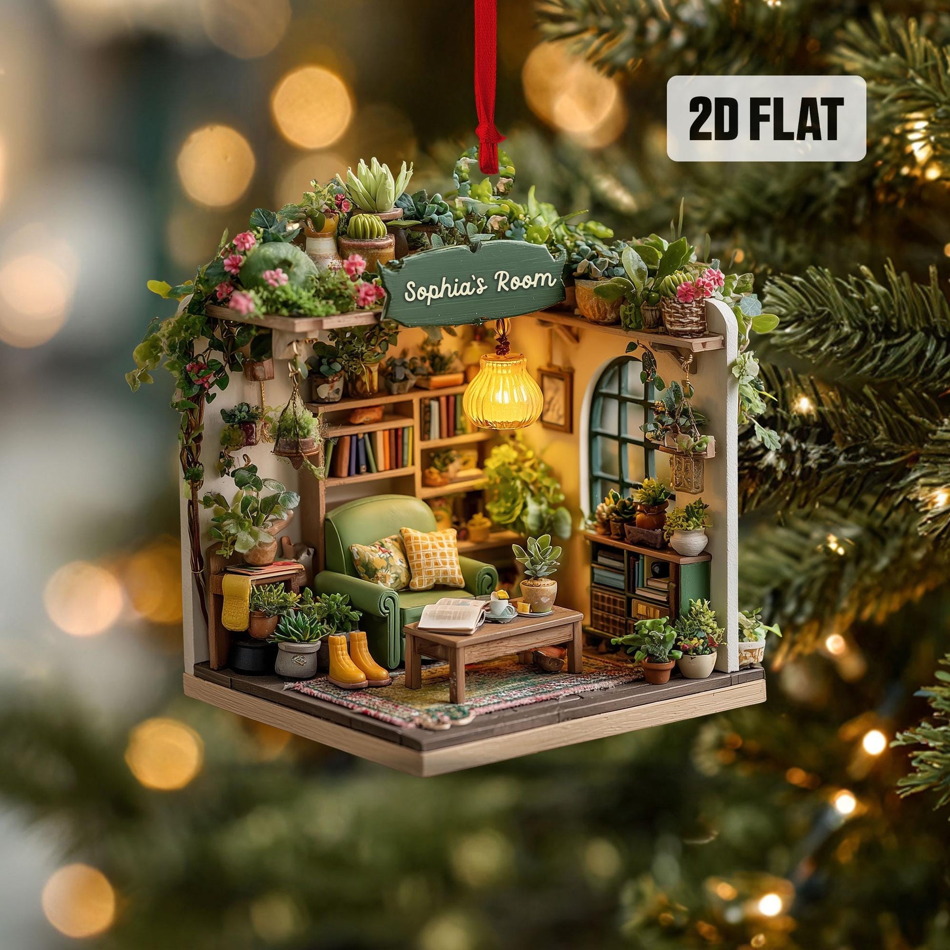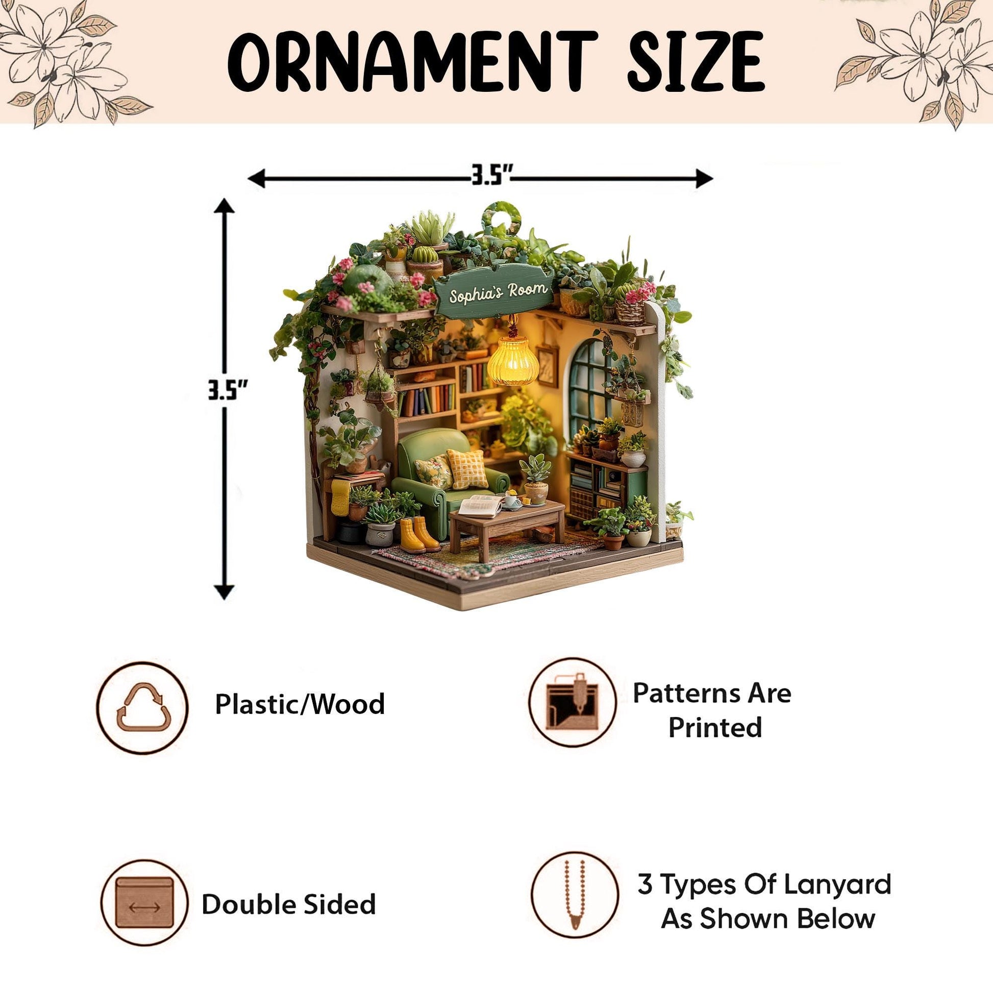 Personalized Garden 2D Flat Ornament, Greenhouse Rearview Mirror Car Accessories, Garden House Christmas Ornament, Plant Lover Gifts