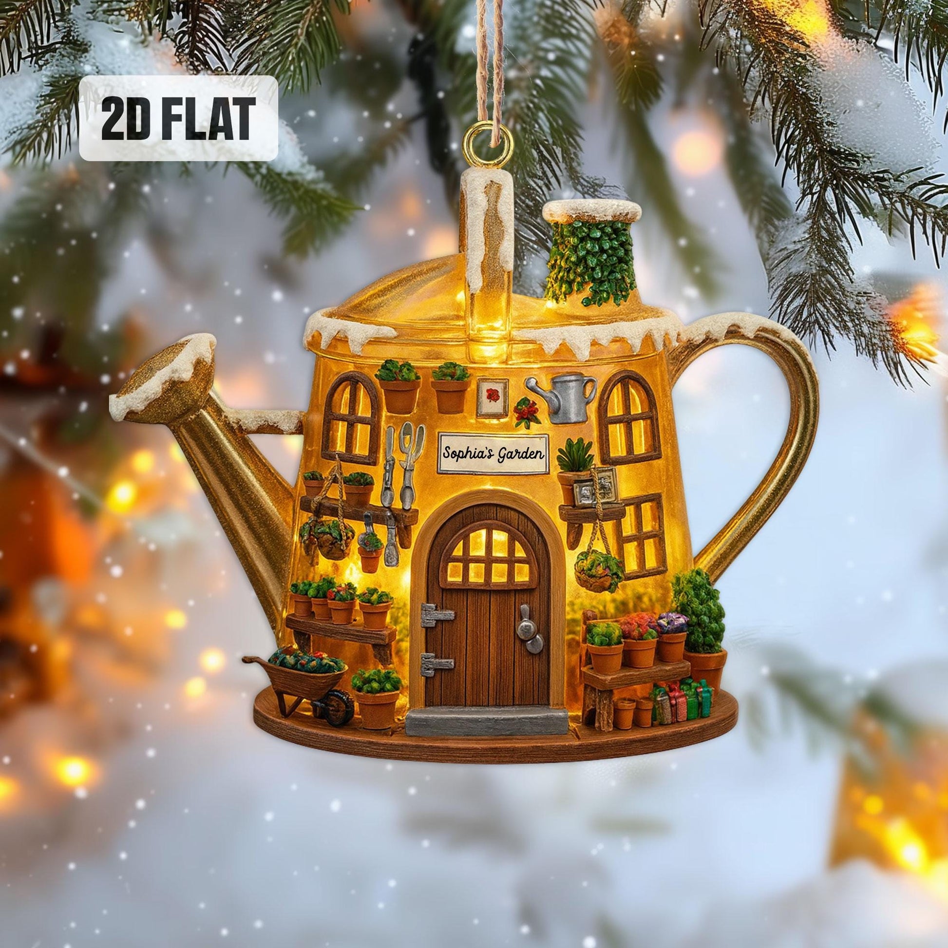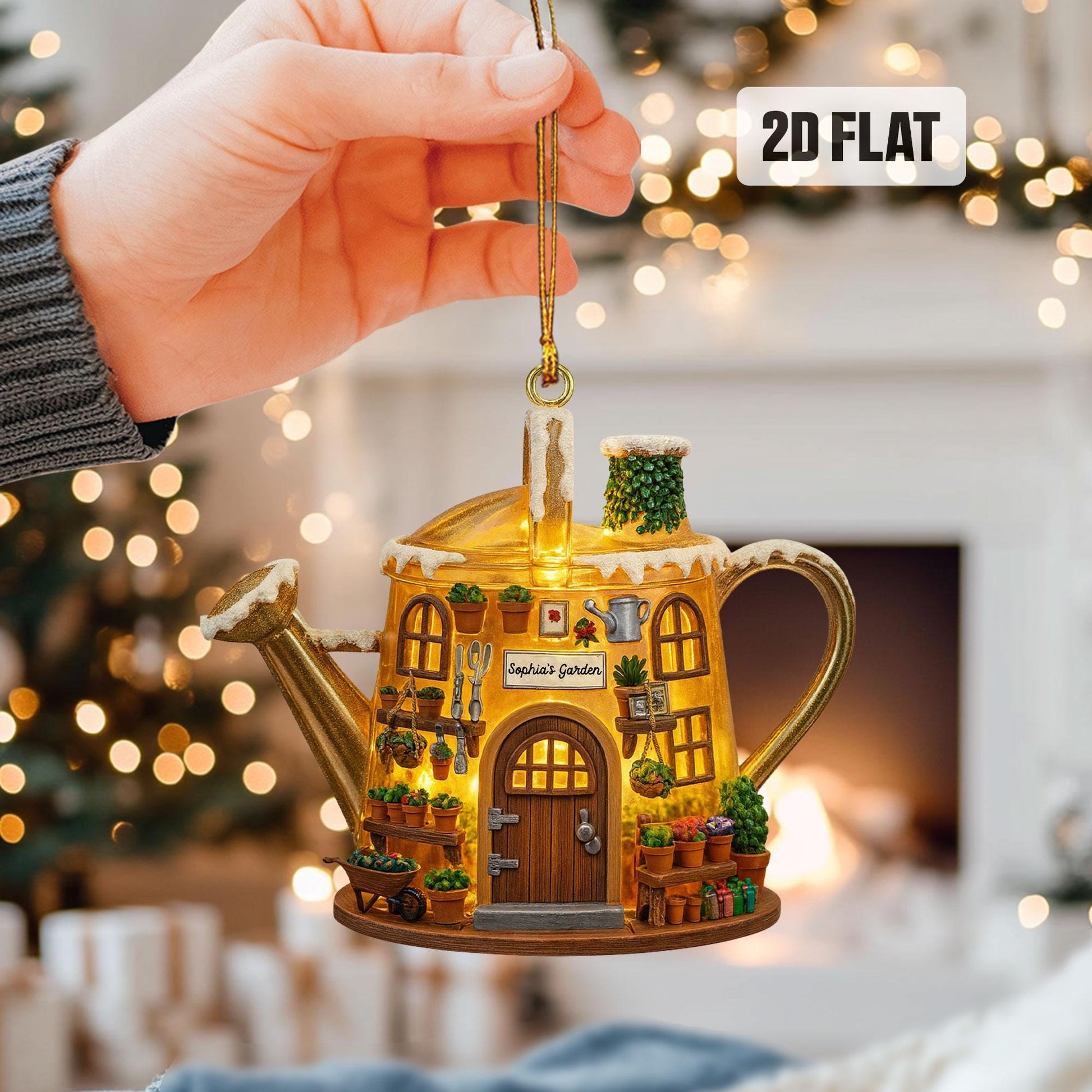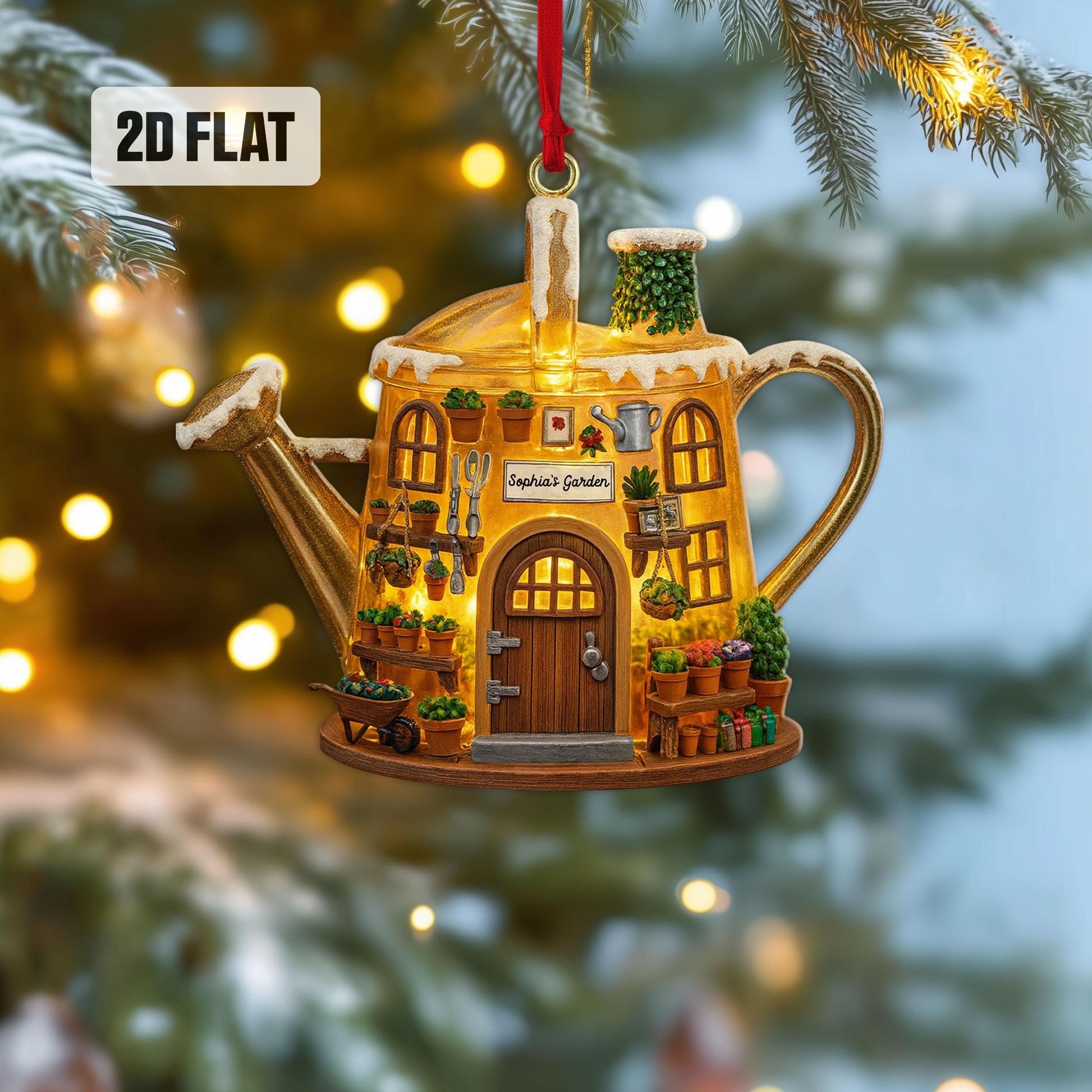 Personalized Garden 2D Flat Ornament, Greenhouse Rearview Mirror Car Accessories, Garden House Christmas Ornament, Xmas Plant Lover Gifts